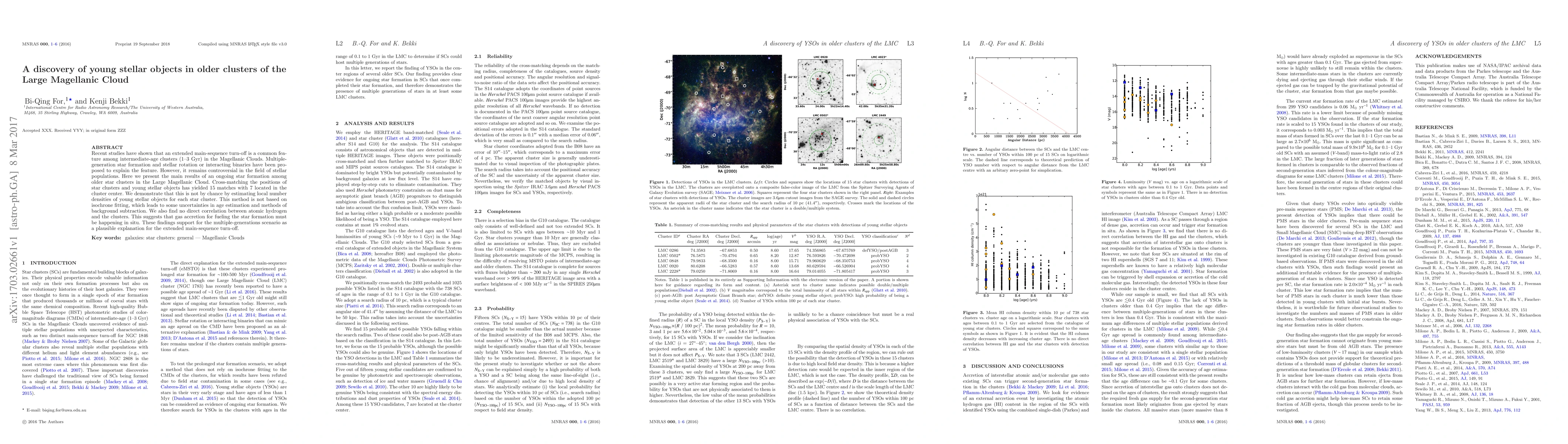 Recent studies have shown that an extended main-sequence turn-off is a common feature among intermediate-age clusters (1--3 Gyr) in the Magellanic Clouds. Multiple-generation star formation and stellar rotation or interacting binaries have been proposed to explain the feature. However, it remains controversial in the field of stellar populations. Here we present the main results of an ongoing star formation among older star clusters in the Large Magellanic Cloud. Cross-matching the positions of star clusters and young stellar objects has yielded 15 matches with 7 located in the cluster center. We demonstrate that this is not by chance by estimating local number densities of young stellar objects for each star cluster. This method is not based on isochrone fitting, which leads to some uncertainties in age estimation and methods of background subtraction. We also find no direct correlation between atomic hydrogen and the clusters. This suggests that gas accretion for fueling the star formation must be happening in situ. These findings support for the multiple-generations scenario as a plausible explanation for the extended main-sequence turn-off.