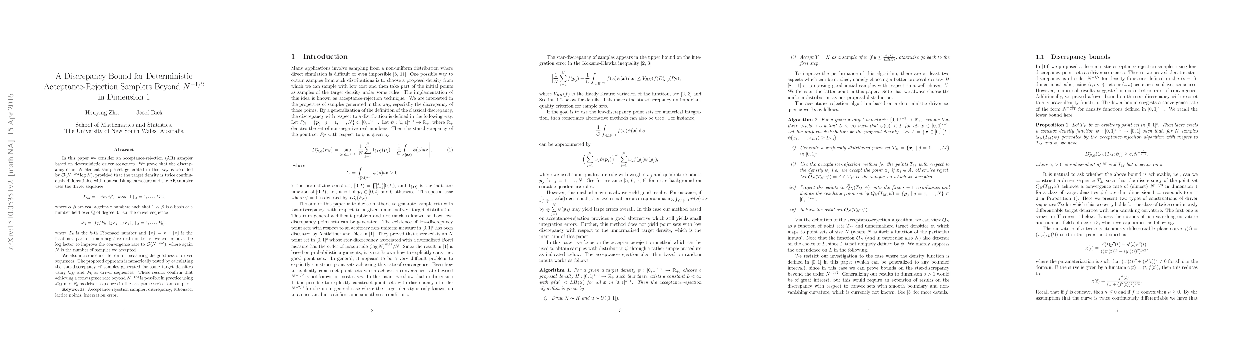 This paper establishes an improved discrepancy bound of $\mathcal{O}(N^{-2/3}\log N)$ for deterministic acceptance-rejection samplers using specific driver sequences, surpassing the traditional $N^{-1/2}$ bound, and numerically validates the effectiveness of these sequences.
