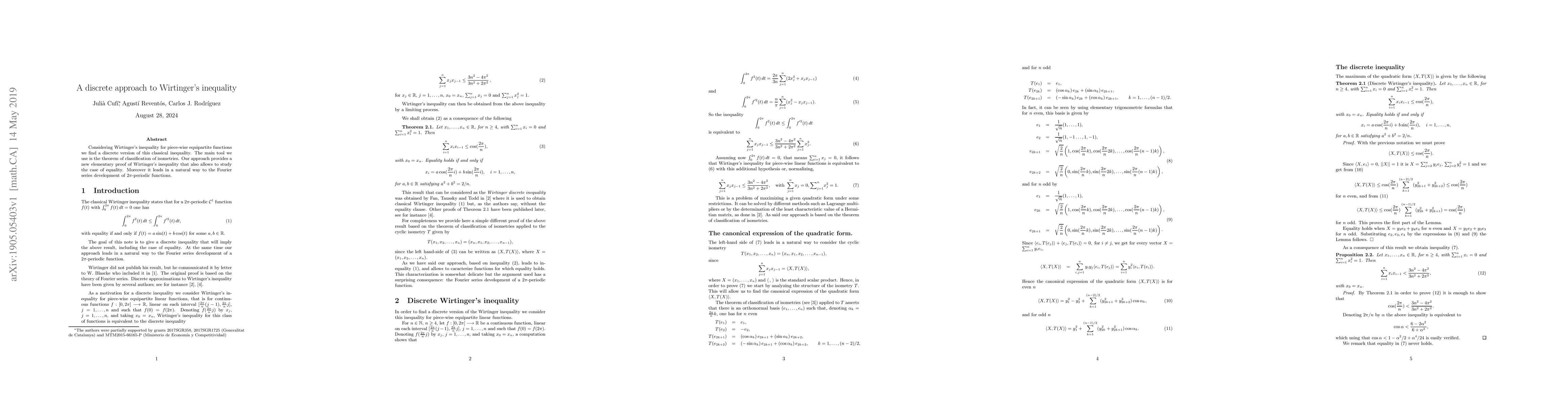 Researchers develop a discrete version of Wirtinger's inequality using the theorem of classification of isometries, providing an elementary proof and insights into Fourier series development for 2±-periodic functions.