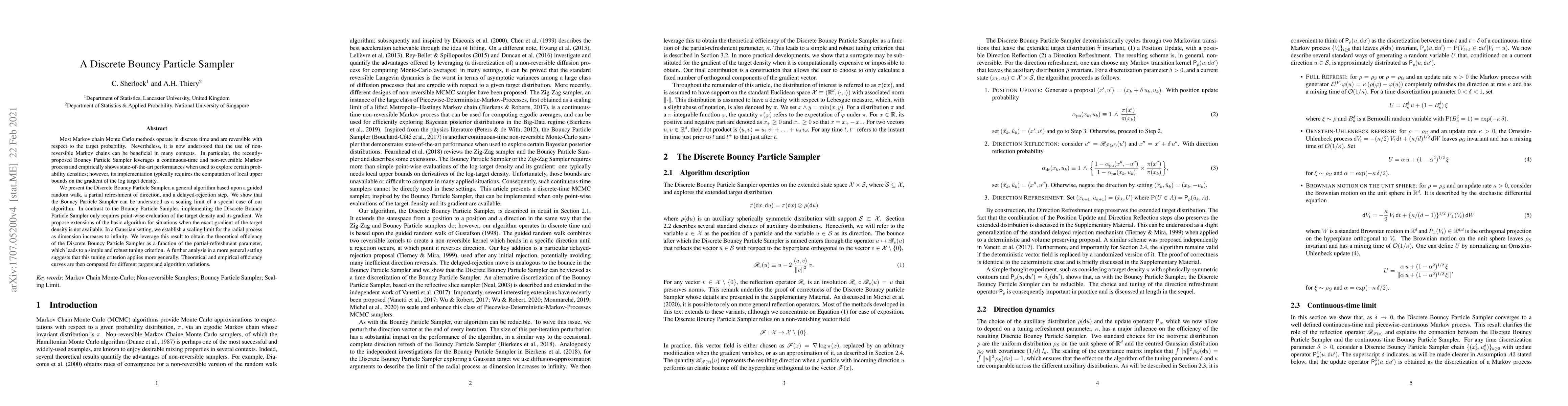The Discrete Bouncy Particle Sampler was shown to be a competitive method for high-dimensional inference problems, especially when using randomly-orientated components of the gradient vector