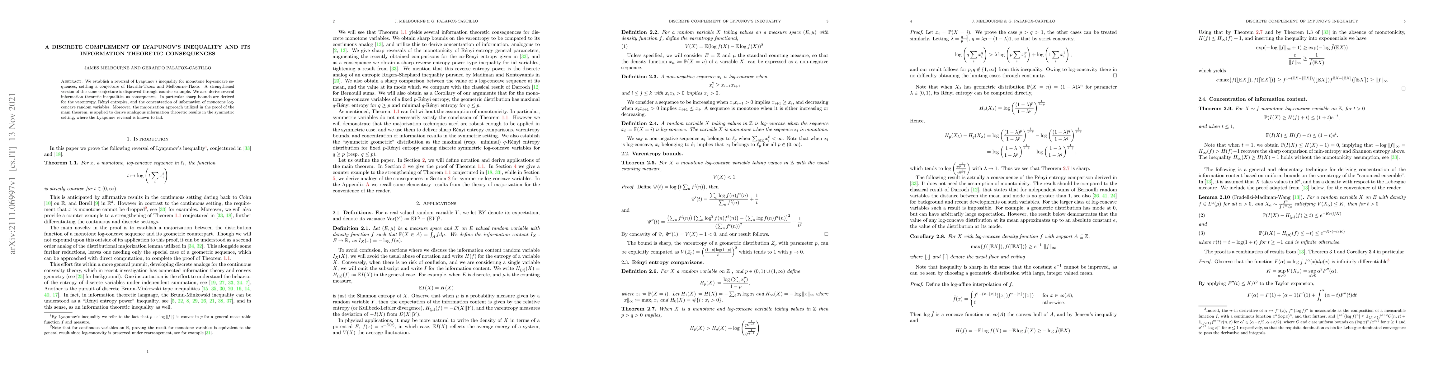 This paper reverses Lyapunov's inequality for monotone log-concave sequences, refuting a strengthened conjecture and deriving new information-theoretic bounds for varentropy, Rényi entropies, and information concentration, using a majorization approach.