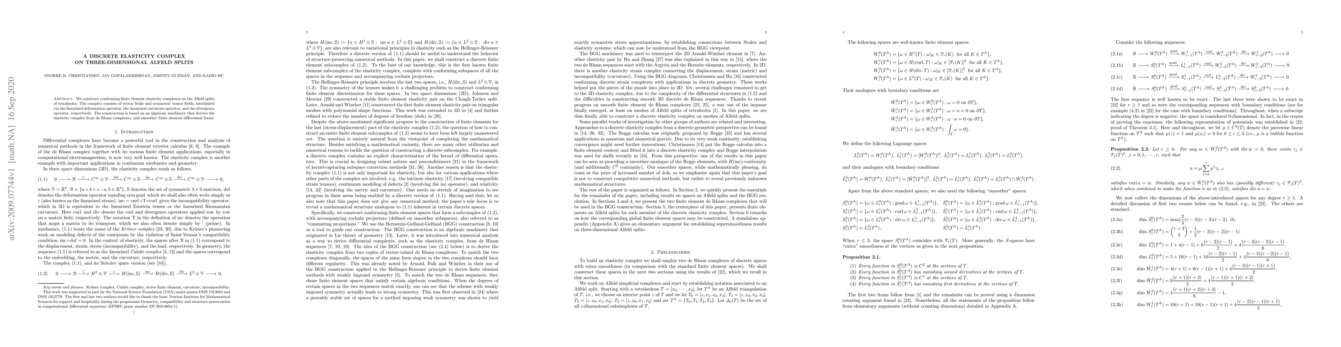 Researchers created a new method to build complex elasticity models using de~Rham complexes and finite element differential forms, enabling accurate simulations of 3D materials.