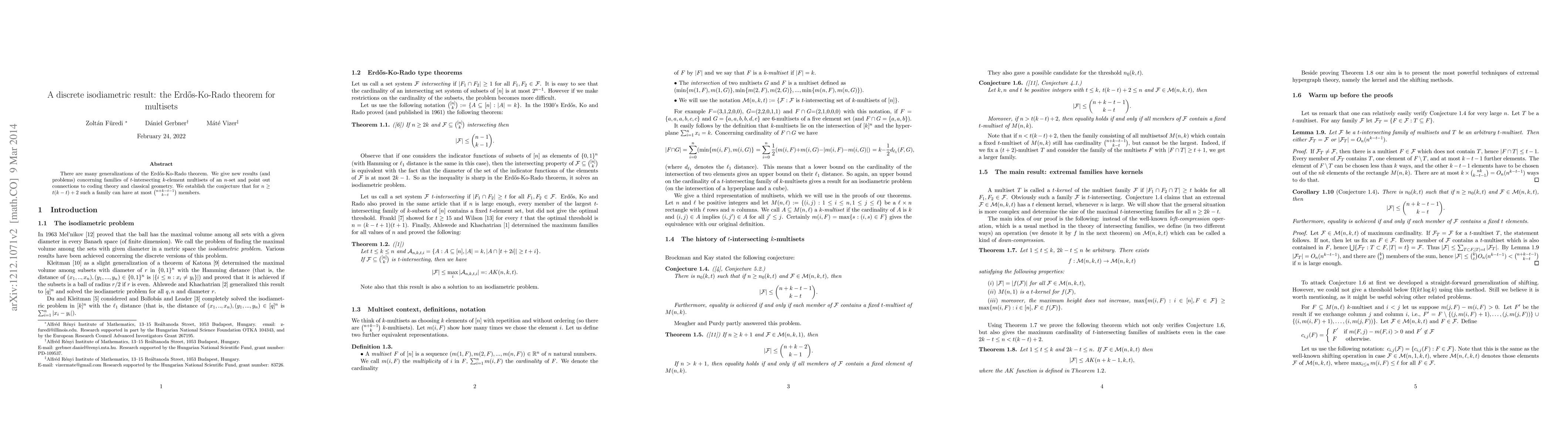 There are many generalizations of the Erd\H{o}s-Ko-Rado theorem. We give new results (and problems) concerning families of $t$-intersecting $k$-element multisets of an $n$-set and point out connections to coding theory and classical geometry. We establish the conjecture that for $n \geq t(k-t)+2$ such a family can have at most ${n+k-t-1\choose k-t}$ members.