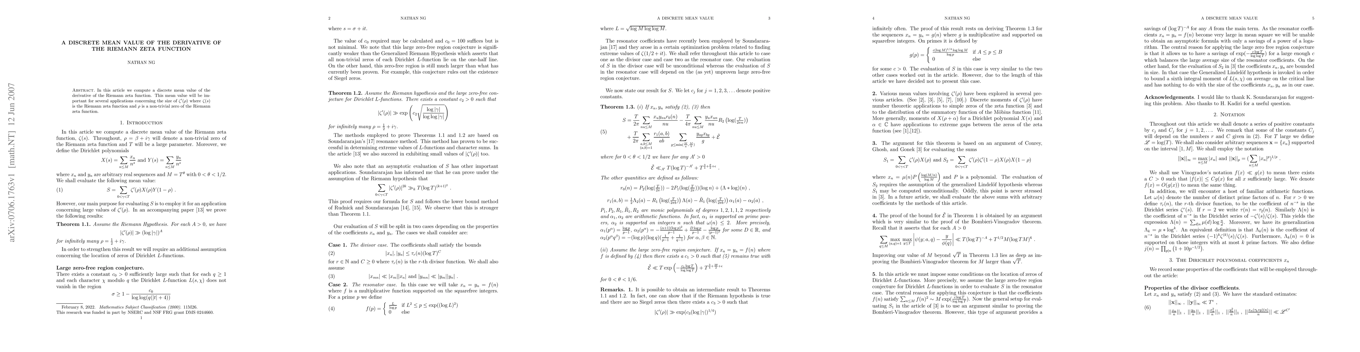 Summary: This paper computes a discrete mean value for the derivative of the Riemann zeta function, which is crucial for understanding the size of $\zeta'(\rho)$ near non-trivial zeros $\rho$ of the Riemann zeta function.