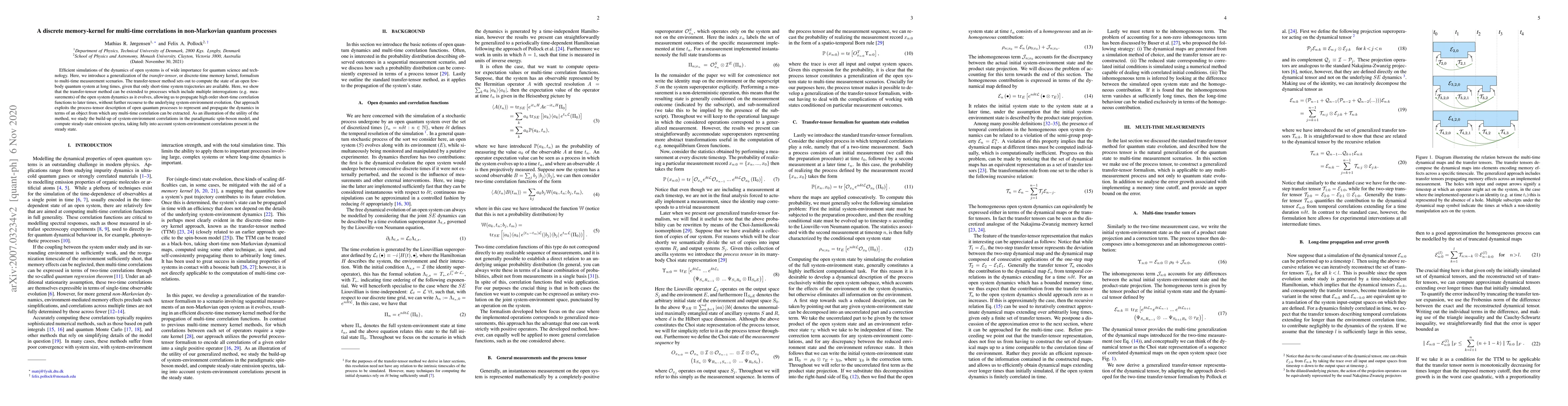 Efficient simulations of the dynamics of open systems is of wide importance for quantum science and tech-nology. Here, we introduce a generalization of the transfer-tensor, or discrete-time memory kernel, formalism to multi-time measurement scenarios. The transfer-tensor method sets out to compute the state of an open few-body quantum system at long times, given that only short-time system trajectories are available. Here, we showthat the transfer-tensor method can be extended to processes which include multiple interrogations (e.g. measurements) of the open system dynamics as it evolves, allowing us to propagate high order short-time correlation functions to later times, without further recourse to the underlying system-environment evolution. Our approach exploits the process-tensor description of open quantum processes to represent and propagate the dynamics in terms of an object from which any multi-time correlation can be extracted. As an illustration of the utility of the method, we study the build-up of system-environment correlations in the paradigmatic spin-boson model, and compute steady-state emission spectra, taking fully into account system-environment correlations present in the steady state.