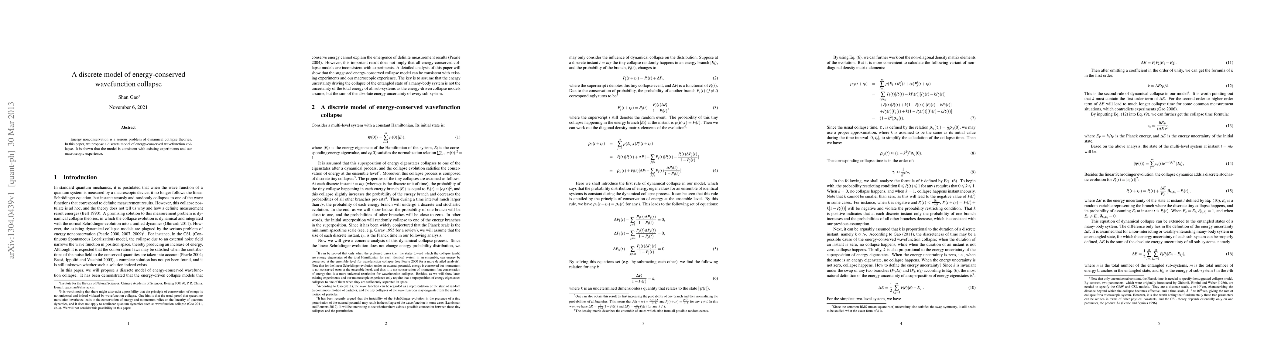 This paper introduces a discrete model for wavefunction collapse that maintains energy conservation, addressing the issue of energy nonconservation in existing dynamical collapse theories. The proposed model is demonstrated to align with experimental observations and everyday macroscopic experiences.