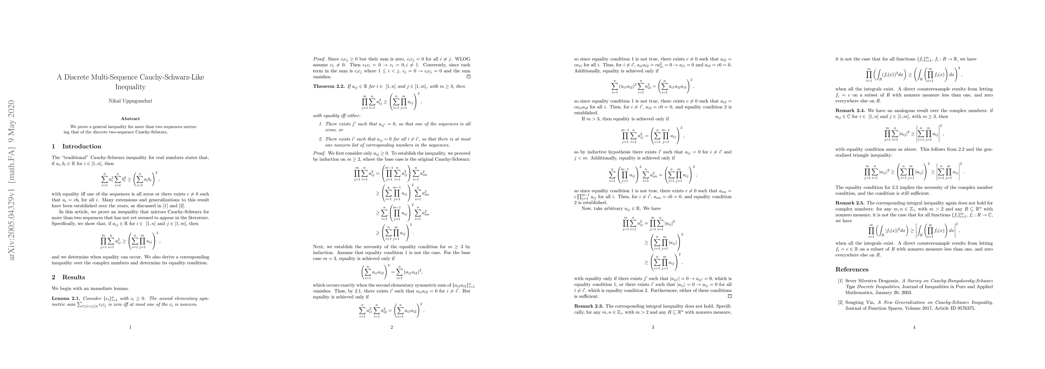We prove a general inequality for more than two sequences mirroring that of the discrete two-sequence Cauchy-Schwarz.