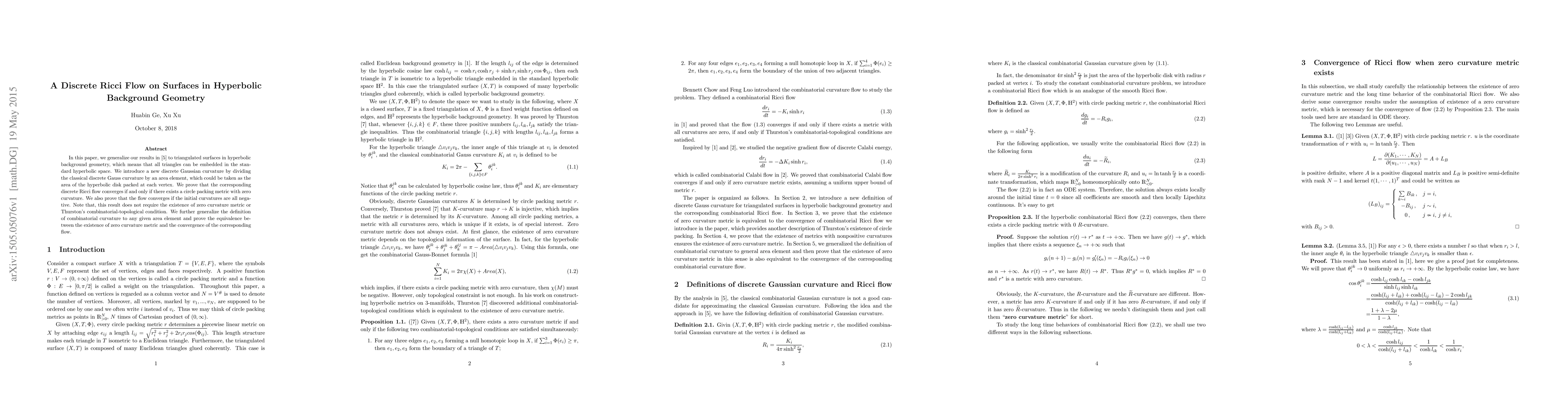 Researchers develop a discrete Ricci flow on surfaces in hyperbolic background geometry, showing that it converges if there exists a circle packing metric with zero curvature or if initial curvatures are negative.