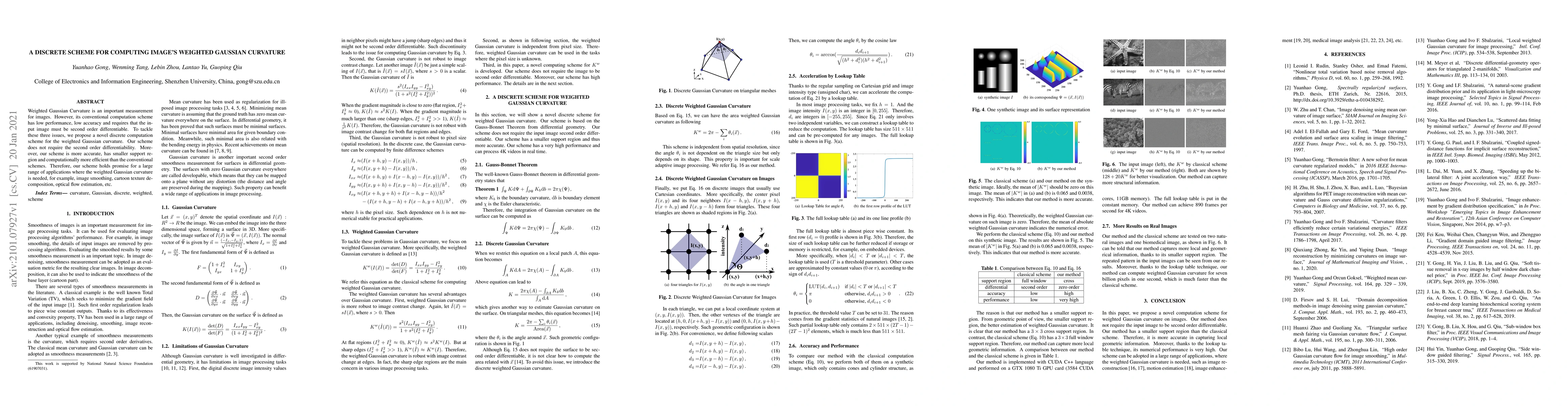 Weighted Gaussian Curvature is an important measurement for images. However, its conventional computation scheme has low performance, low accuracy and requires that the input image must be second order differentiable. To tackle these three issues, we propose a novel discrete computation scheme for the weighted Gaussian curvature. Our scheme does not require the second order differentiability. Moreover, our scheme is more accurate, has smaller support region and computationally more efficient than the conventional schemes. Therefore, our scheme holds promise for a large range of applications where the weighted Gaussian curvature is needed, for example, image smoothing, cartoon texture decomposition, optical flow estimation, etc.