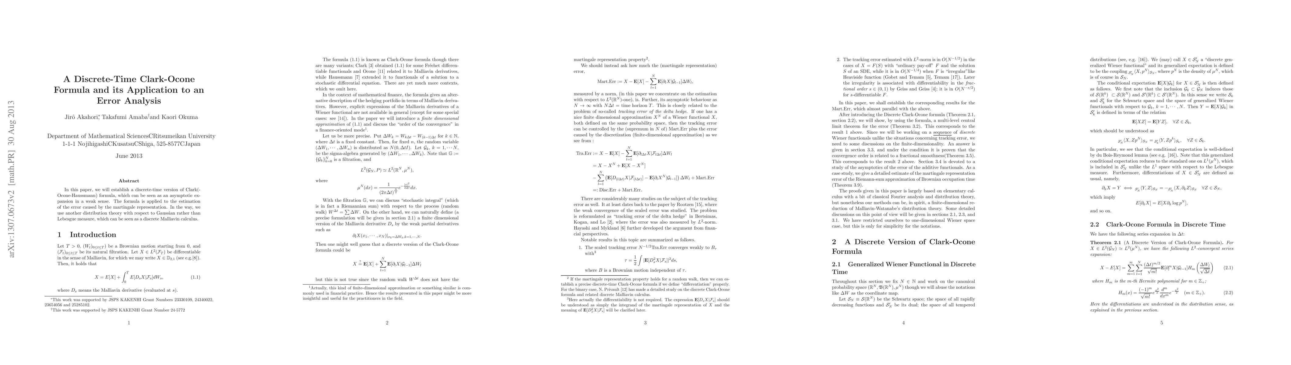 This paper introduces a discrete-time Clark-Ocone formula as an asymptotic expansion, and applies it to analyze errors in martingale representation, utilizing a distribution theory based on Gaussian rather than Lebesgue measure.
