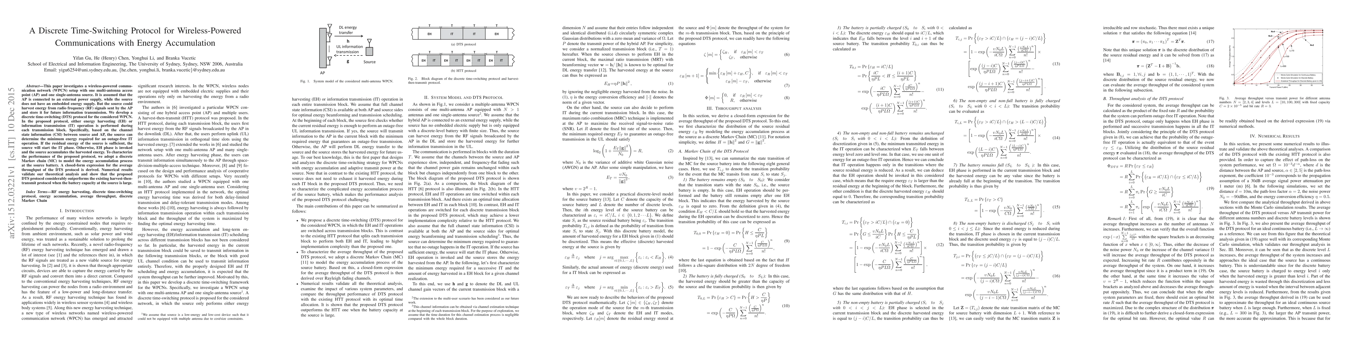 This paper investigates a wireless-powered communication network (WPCN) setup with one multi-antenna access point (AP) and one single-antenna source. It is assumed that the AP is connected to an external power supply, while the source does not have an embedded energy supply. But the source could harvest energy from radio frequency (RF) signals sent by the AP and store it for future information transmission. We develop a discrete time-switching (DTS) protocol for the considered WPCN. In the proposed protocol, either energy harvesting (EH) or information transmission (IT) operation is performed during each transmission block. Specifically, based on the channel state information (CSI) between source and AP, the source can determine the minimum energy required for an outage-free IT operation. If the residual energy of the source is sufficient, the source will start the IT phase. Otherwise, EH phase is invoked and the source accumulates the harvested energy. To characterize the performance of the proposed protocol, we adopt a discrete Markov chain (MC) to model the energy accumulation process at the source battery. A closed-form expression for the average throughput of the DTS protocol is derived. Numerical results validate our theoretical analysis and show that the proposed DTS protocol considerably outperforms the existing harvest-then-transmit protocol when the battery capacity at the source is large.