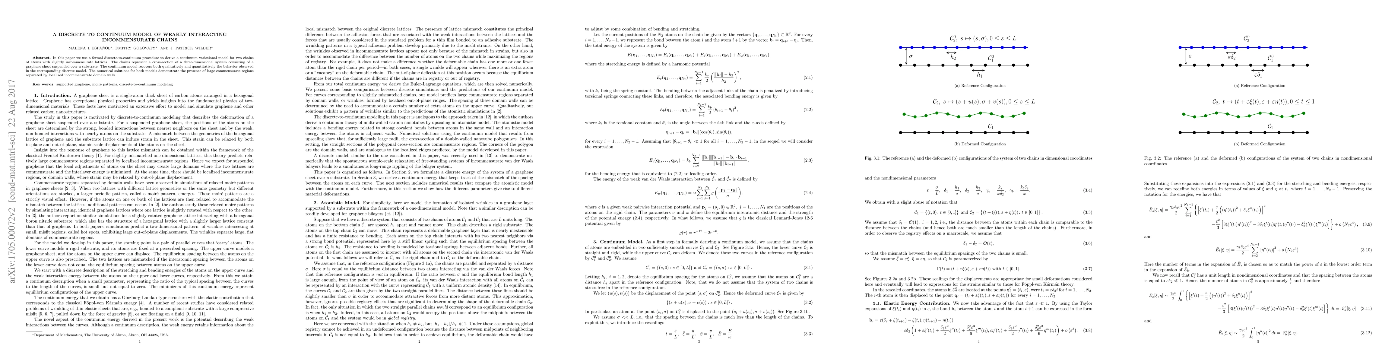 Researchers developed a continuum model to study weakly interacting incommensurate chains, which mimics graphene suspended over a substrate, recovering qualitative and quantitative behavior of the discrete model.