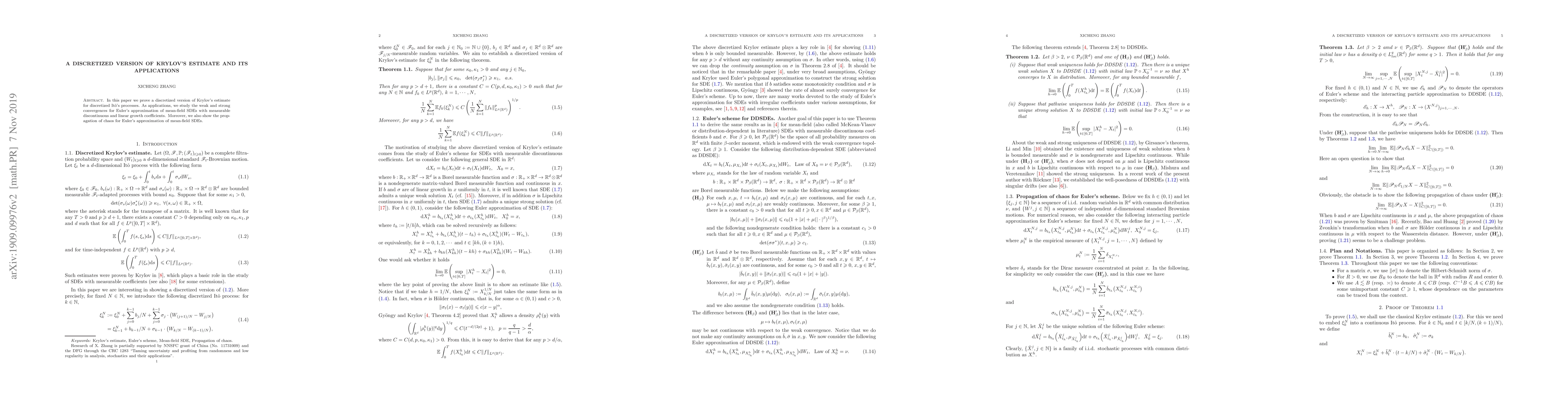 In this paper we prove a discretized version of Krylov's estimate for discretized It\^o's processes. As applications, we study the weak and strong convergences for Euler's approximation of mean-field SDEs with measurable discontinuous and linear growth coefficients. Moreover, we also show the propagation of chaos for Euler's approximation of mean-field SDEs.