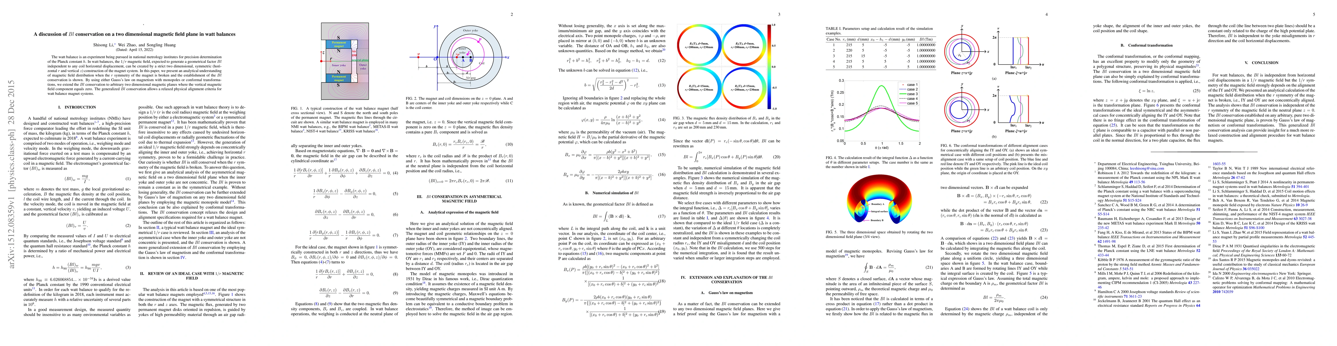 The watt balance is an experiment being pursued in national metrology institutes for precision determination of the Planck constant $h$. In watt balances, the $1/r$ magnetic field, expected to generate a geometrical factor $Bl$ independent to any coil horizontal displacement, can be created by a strict two dimensional, symmetric (horizontal $r$ and vertical $z$) construction of the magnet system. In this paper, we present an analytical understanding of magnetic field distribution when the $r$ symmetry of the magnet is broken and the establishment of the $Bl$ conservation is shown. By using either Gauss's law on magnetism with monopoles or conformal transformations, we extend the $Bl$ conservation to arbitrary two dimensional magnetic planes where the vertical magnetic field component equals zero. The generalized $Bl$ conservation allows a relaxed physical alignment criteria for watt balance magnet systems.
