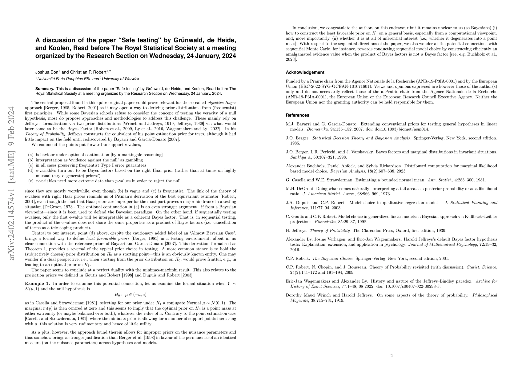 This is a discussion of the paper "Safe testing" by Gr\"unwald, de Heide, and Koolen, Read before The Royal Statistical Society at a meeting organized by the Research Section on Wednesday, 24 January, 2024
