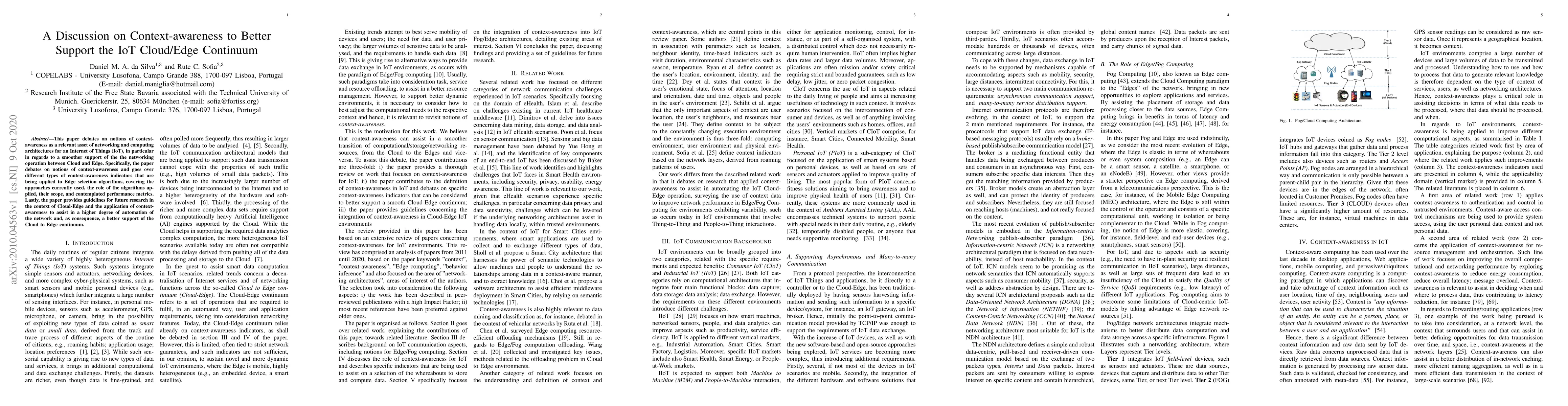 This paper discusses the importance of context-awareness in supporting IoT Cloud/Edge continuum, highlighting different types of indicators used in Edge selection algorithms and providing guidelines for future research on automation and network support.