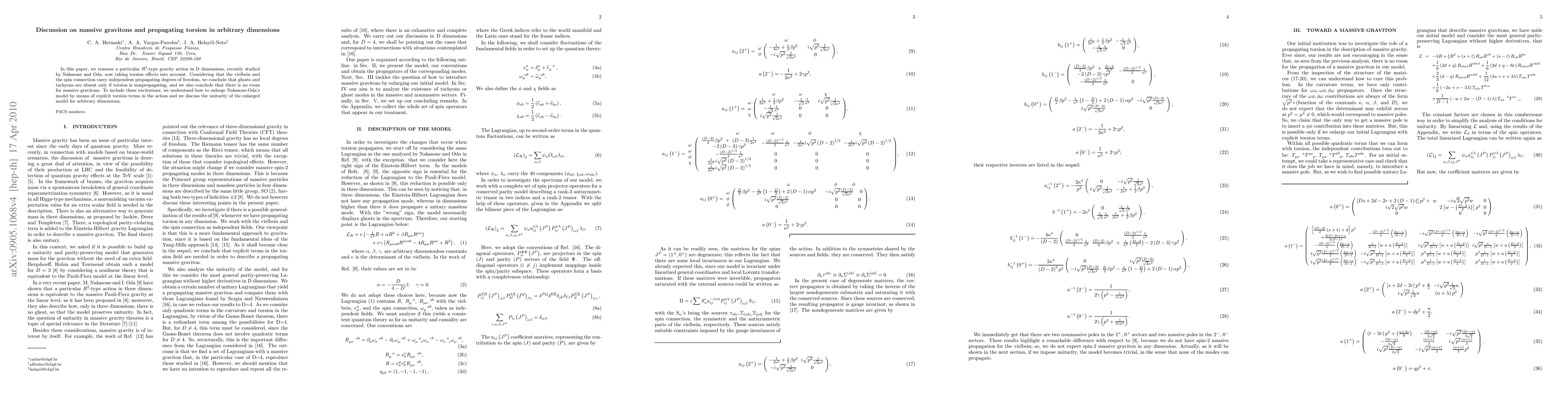 This paper reassesses $R^{2}$-type gravity in D dimensions, incorporating torsion effects, and finds that ghosts and tachyons are absent only if torsion is non-propagating. The authors propose an extension of the Nakasone-Oda model to include massive gravitons and discuss the unitarity of this enlarged model.