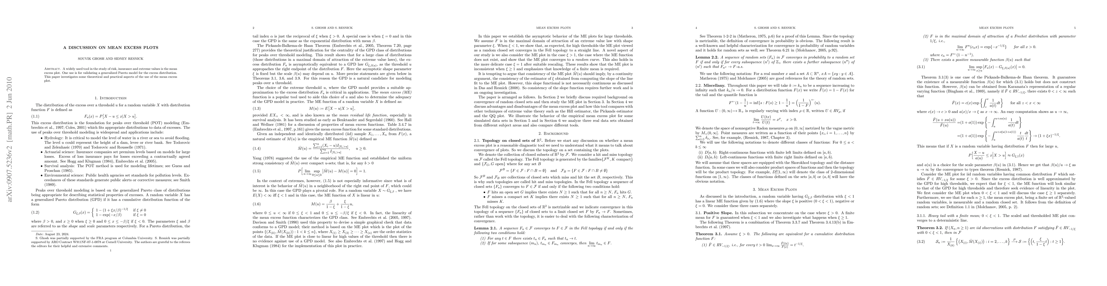 A widely used tool in the study of risk, insurance and extreme values is the mean excess plot. One use is for validating a generalized Pareto model for the excess distribution. This paper investigates some theoretical and practical aspects of the use of the mean excess plot.