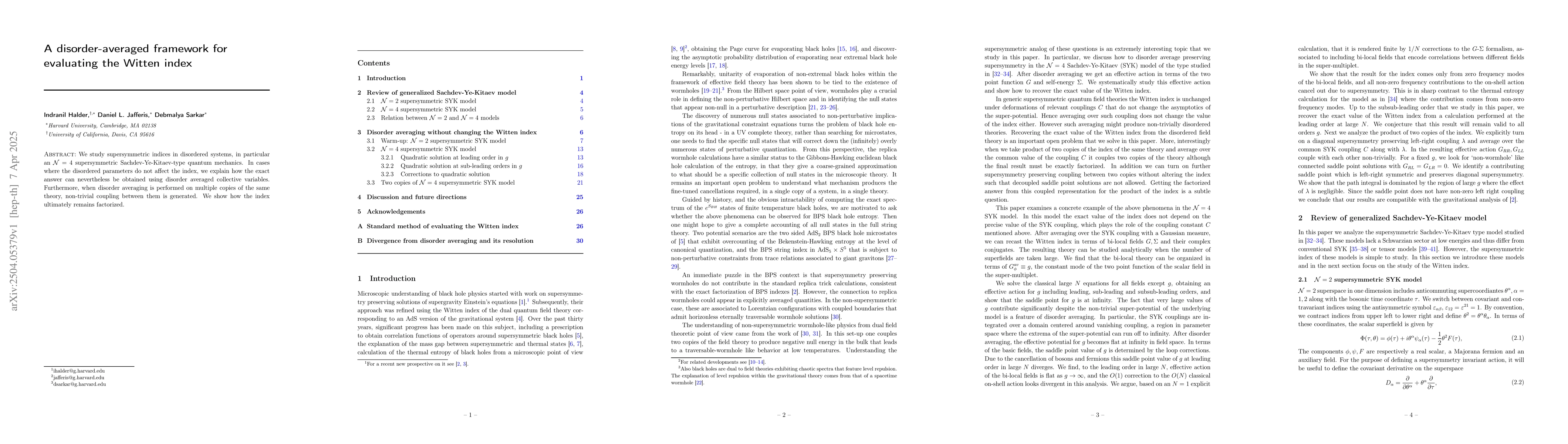 The paper presents a disorder-averaged framework for evaluating the Witten index, demonstrating its effectiveness in handling cases where disordered parameters don't affect the index and revealing non-trivial coupling between multiple copies of the same theory.