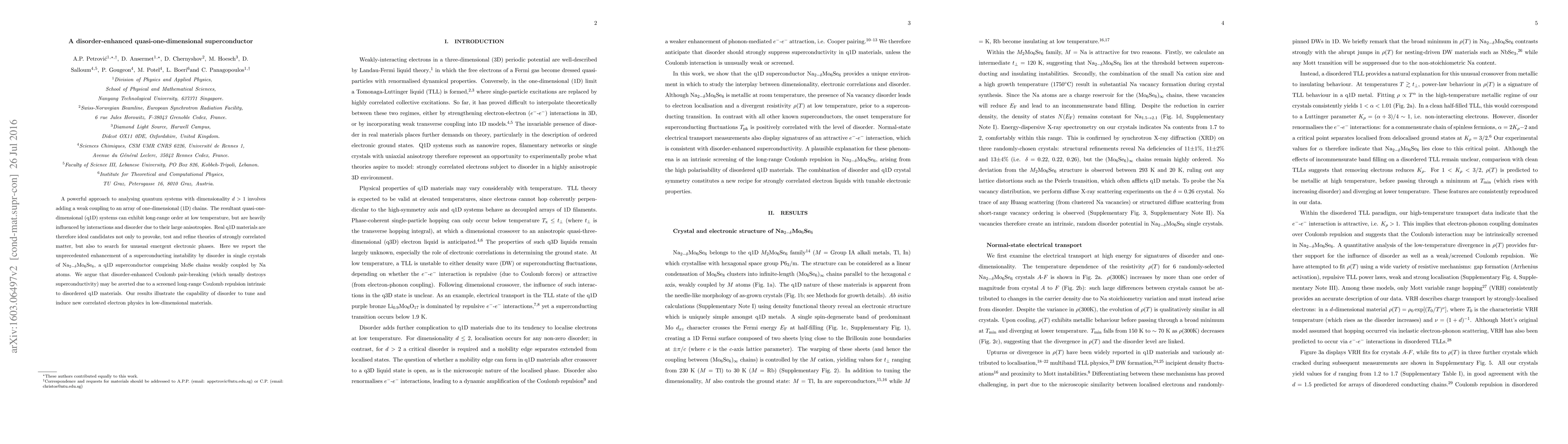 This paper reports the enhancement of superconductivity in quasi-one-dimensional Na$_{2-\delta}$Mo$_6$Se$_6$ crystals due to disorder, challenging conventional pair-breaking effects. The findings suggest that intrinsic screened long-range Coulomb repulsion in disordered quasi-one-dimensional materials can induce new correlated electron physics.