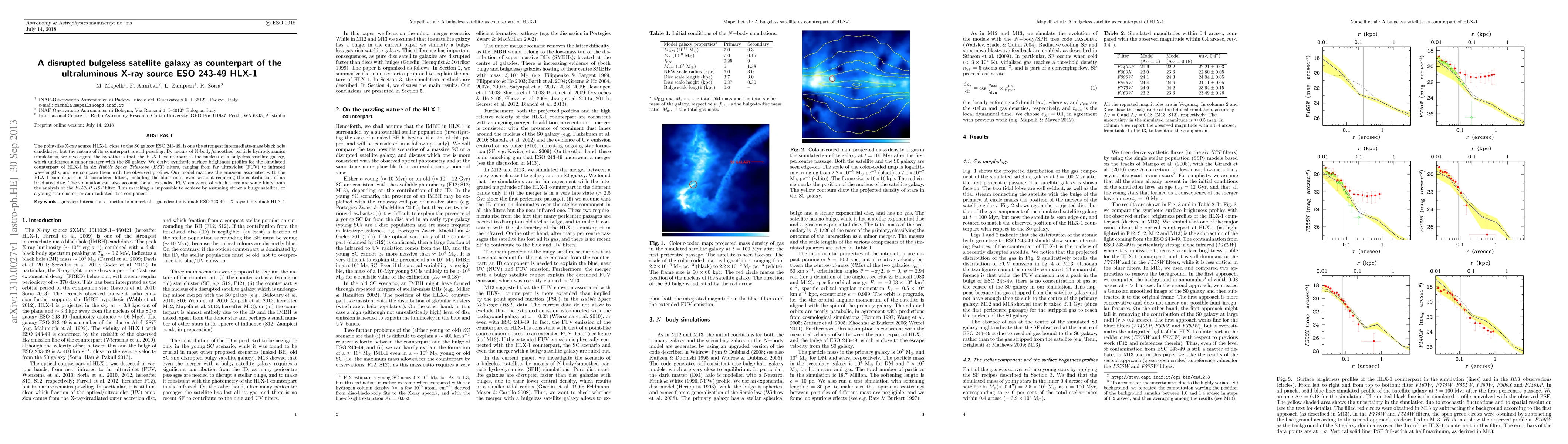 Researchers used simulations to find that the HLX-1 counterpart is likely a bulgeless satellite galaxy undergoing a minor merger with a nearby S0 galaxy, matching observed X-ray emission patterns in multiple filters.