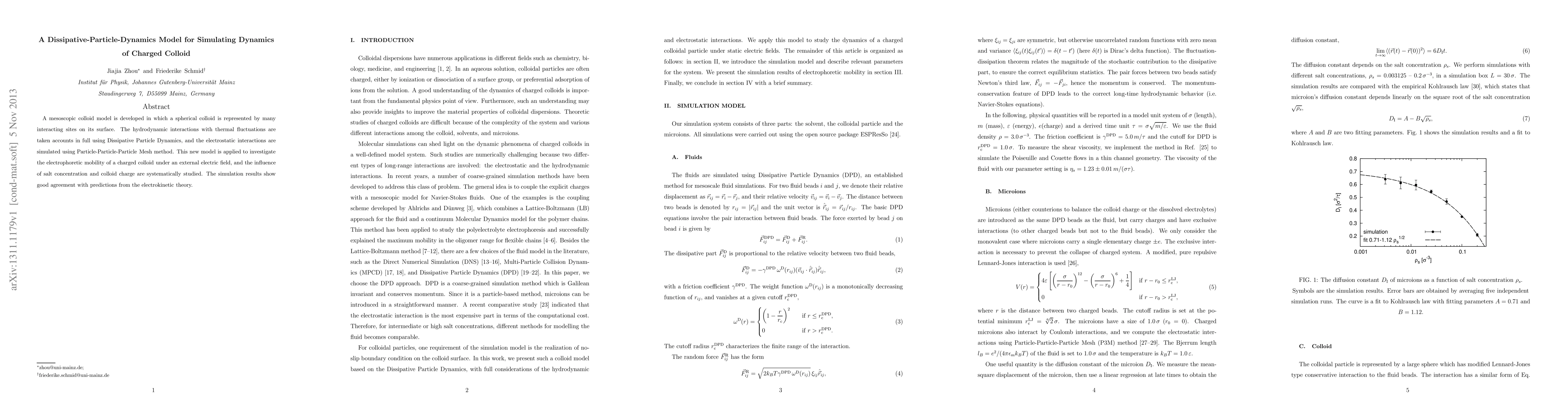 This paper develops a mesoscopic model for charged colloids using Dissipative Particle Dynamics to simulate hydrodynamic interactions and the Particle-Particle-Particle Mesh method for electrostatic interactions. The study investigates electrophoretic mobility under an electric field, revealing the effects of salt concentration and colloid charge, with results aligning well with electrokinetic theory predictions.