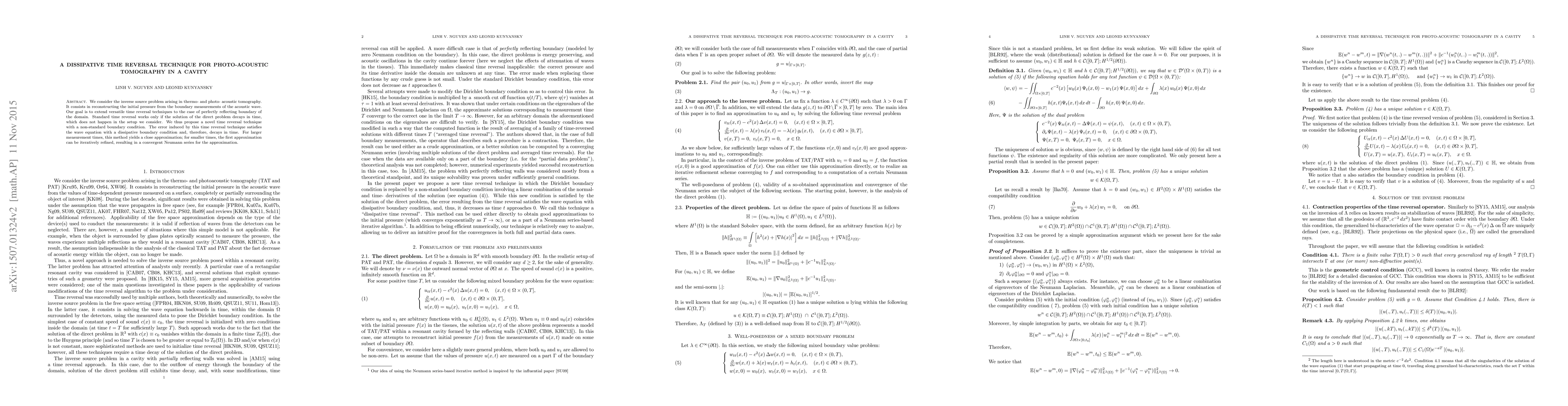 Researchers developed a new time reversal technique for photo-acoustic tomography in a cavity, which overcomes limitations of existing methods and provides an accurate approximation of the initial pressure.