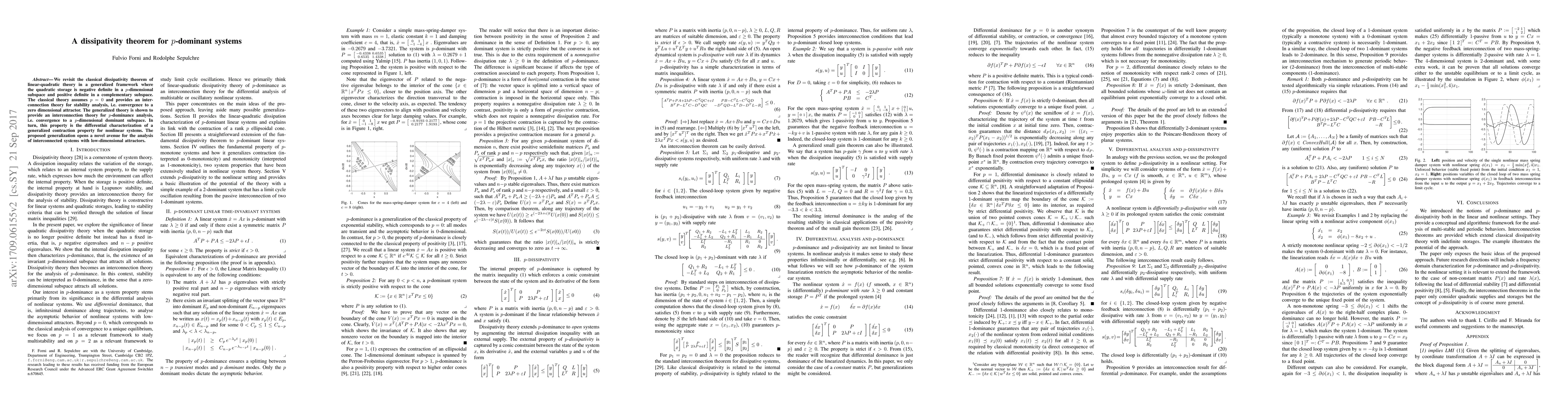 This paper generalizes the classical dissipativity theorem to p-dominant systems, allowing for negative definite quadratic storage in a p-dimensional subspace and positive definite in the complementary subspace. The new framework provides an interconnection theory for p-dominance analysis, leading to convergence to a p-dimensional dominant subspace, which characterizes a generalized contraction property for nonlinear systems.