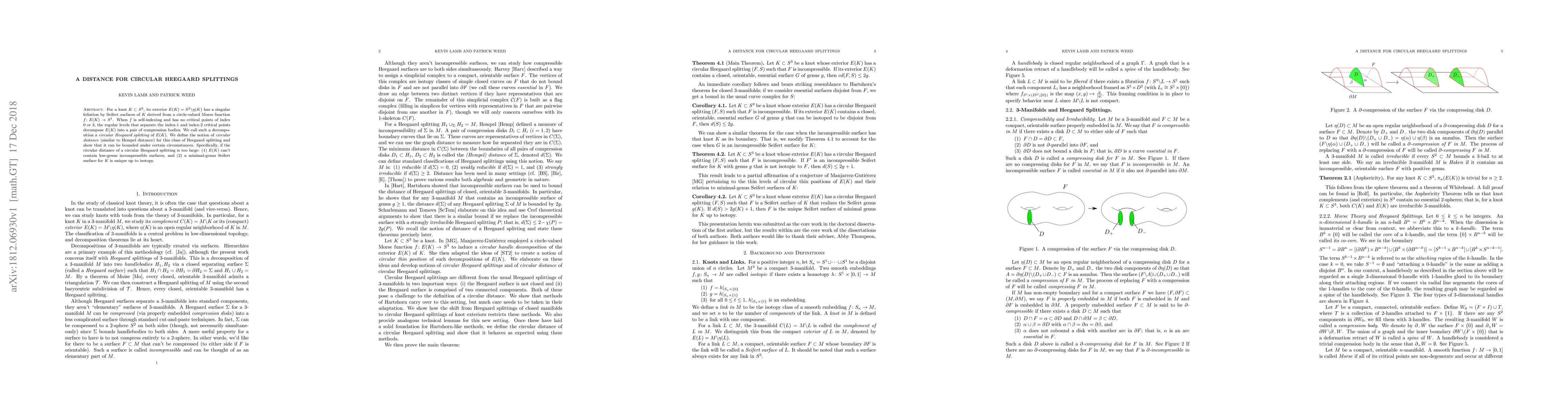 For a knot $K\subset S^3$, its exterior $E(K) = S^3\backslash\eta(K)$ has a singular foliation by Seifert surfaces of $K$ derived from a circle-valued Morse function $f\colon E(K)\to S^1$. When $f$ is self-indexing and has no critical points of index 0 or 3, the regular levels that separate the index-1 and index-2 critical points decompose $E(K)$ into a pair of compression bodies. We call such a decomposition a circular Heegaard splitting of $E(K)$. We define the notion of circular distance (similar to Hempel distance) for this class of Heegaard splitting and show that it can be bounded under certain circumstances. Specifically, if the circular distance of a circular Heegaard splitting is too large: (1) $E(K)$ can't contain low-genus incompressible surfaces, and (2) a minimal-genus Seifert surface for $K$ is unique up to isotopy.