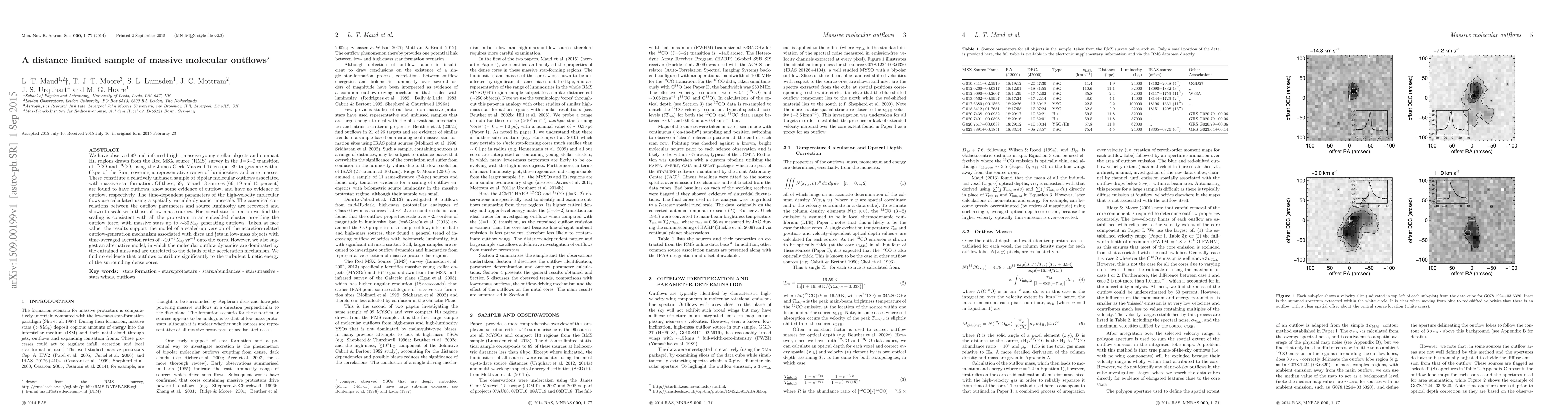 We have observed 99 mid-infrared-bright, massive young stellar objects and compact HII regions drawn from the Red MSX source (RMS) survey in the J=3$-$2 transition of $^{12}$CO and $^{13}$CO, using the James Clerk Maxwell Telescope. 89 targets are within 6 kpc of the Sun, covering a representative range of luminosities and core masses. These constitute a relatively unbiased sample of bipolar molecular outflows associated with massive star formation. Of these, 59, 17 and 13 sources (66, 19 and 15 percent) are found to have outflows, show some evidence of outflow, and have no evidence of outflow, respectively. The time-dependent parameters of the high-velocity molecular flows are calculated using a spatially variable dynamic timescale. The canonical correlations between the outflow parameters and source luminosity are recovered and shown to scale with those of low-mass sources. For coeval star formation we find the scaling is consistent with all the protostars in an embedded cluster providing the outflow force, with massive stars up to $\sim$30 M$_{\odot}$ generating outflows. Taken at face value, the results support the model of a scaled-up version of the accretion-related outflow-generation mechanism associated with discs and jets in low-mass objects with time-averaged accretion rates of $\sim$10$^{-3}$ M$_{\odot}$ yr$^{-1}$ onto the cores. However, we also suggest an alternative model, in which the molecular outflow dynamics are dominated by the entrained mass and are unrelated to the details of the acceleration mechanism. We find no evidence that outflows contribute significantly to the turbulent kinetic energy of the surrounding dense cores.