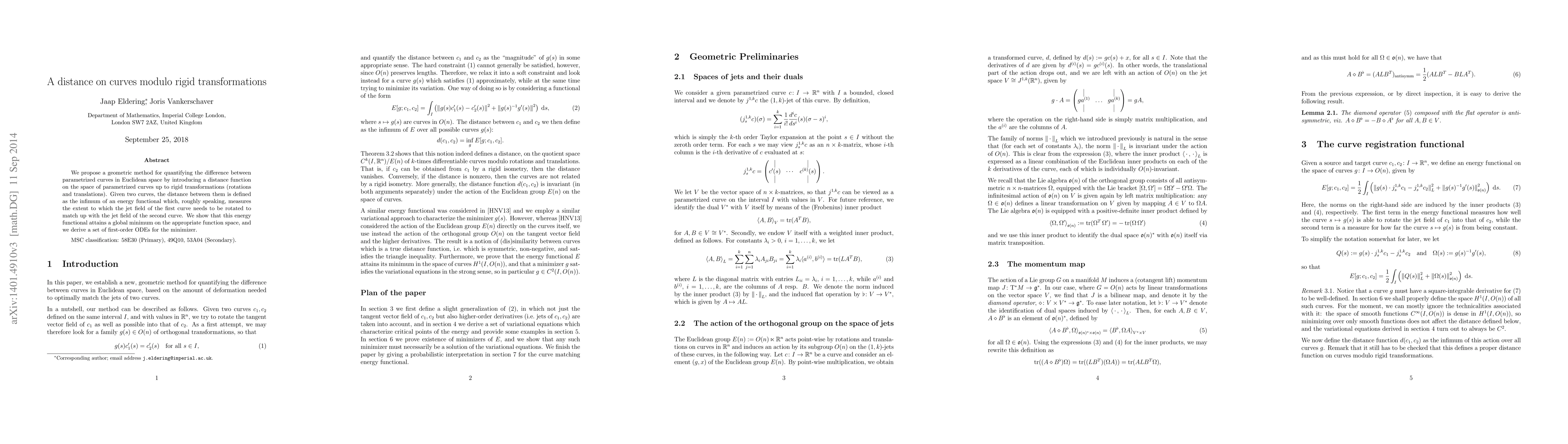 A new method for measuring the distance between curves in space, accounting for rigid transformations like rotations and translations, has been proposed and shown to have a global minimum.