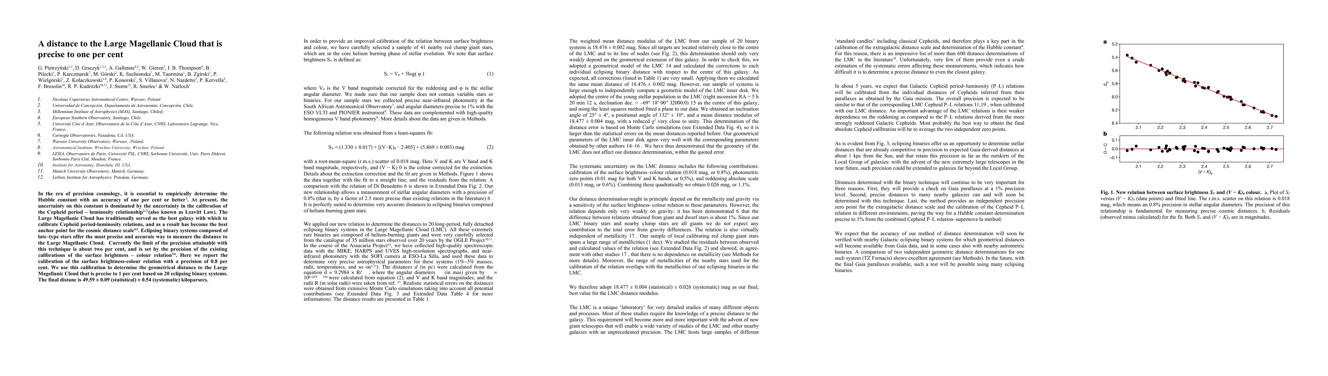 This paper reports a precise 1% determination of the distance to the Large Magellanic Cloud using eclipsing binary systems, achieving this accuracy through a refined calibration of the surface brightness-colour relation. The resulting geometrical distance is 49.59 ± 0.09 (statistical) ± 0.54 (systematic) kiloparsecs.