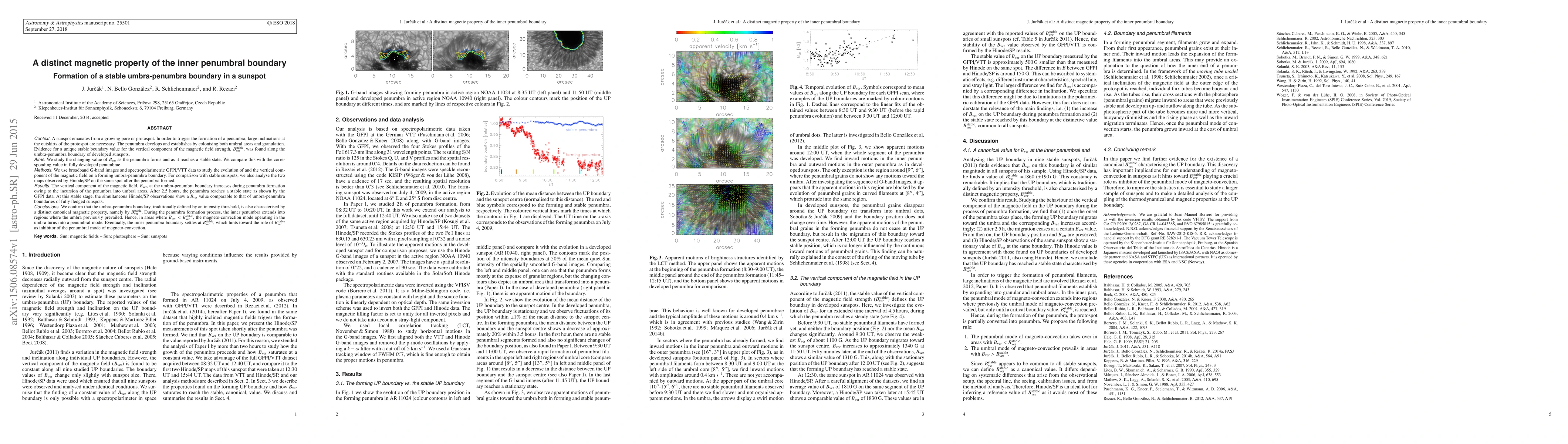 A sunspot emanates from a growing pore or protospot. In order to trigger the formation of a penumbra, large inclinations at the outskirts of the protospot are necessary. The penumbra develops and establishes by colonising both umbral areas and granulation. Evidence for a unique stable boundary value for the vertical component of the magnetic field strength, $B^{\rm stable}_{\rm ver}$, was found along the umbra-penumbra boundary of developed sunspots. We use broadband G-band images and spectropolarimetric GFPI/VTT data to study the evolution of and the vertical component of the magnetic field on a forming umbra-penumbra boundary. For comparison with stable sunspots, we also analyse the two maps observed by Hinode/SP on the same spot after the penumbra formed. The vertical component of the magnetic field, $B_{\rm ver}$, at the umbra-penumbra boundary increases during penumbra formation owing to the incursion of the penumbra into umbral areas. After 2.5 hours, the penumbra reaches a stable state as shown by the GFPI data. At this stable stage, the simultaneous Hinode/SP observations show a $B_{\rm ver}$ value comparable to that of umbra-penumbra boundaries of fully fledged sunspots. We confirm that the umbra-penumbra boundary, traditionally defined by an intensity threshold, is also characterised by a distinct canonical magnetic property, namely by $B^{\rm stable}_{\rm ver}$. During the penumbra formation process, the inner penumbra extends into regions where the umbra previously prevailed. Hence, in areas where $B_{\rm ver} < B^{\rm stable}_{\rm ver}$, the magneto-convection mode operating in the umbra turns into a penumbral mode. Eventually, the inner penumbra boundary settles at $B^{\rm stable}_{\rm ver}$, which hints toward the role of $B_{\rm ver}^{\rm stable}$ as inhibitor of the penumbral mode of magneto-convection.