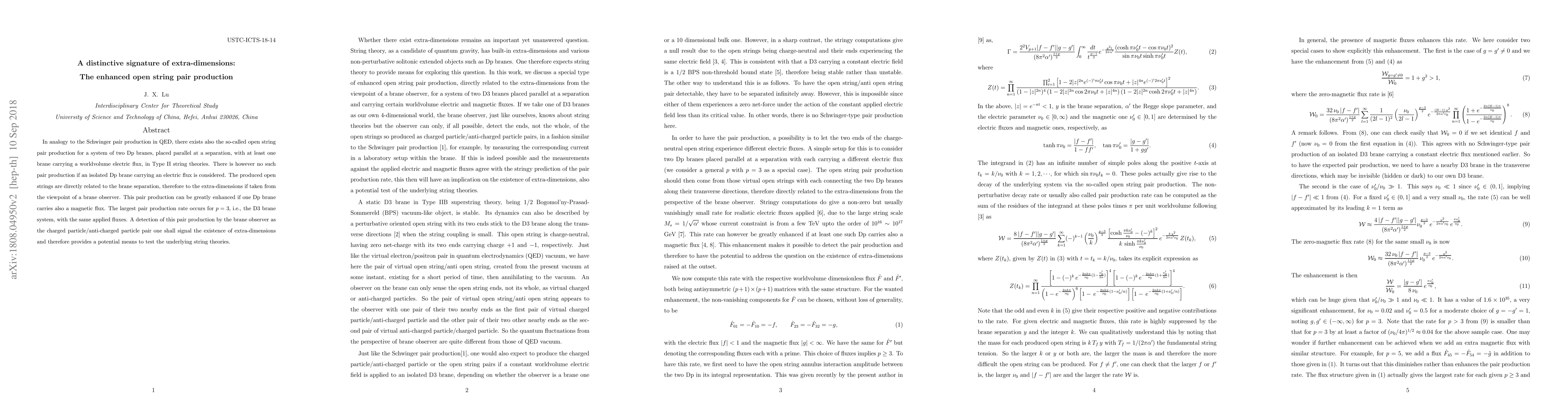 This paper explores the enhanced open string pair production in Type II string theories, analogous to Schwinger pair production, which occurs between parallel Dp branes with electric and magnetic fluxes. The largest production rate is observed for D3 branes, suggesting a potential detection method for extra-dimensional signatures.
