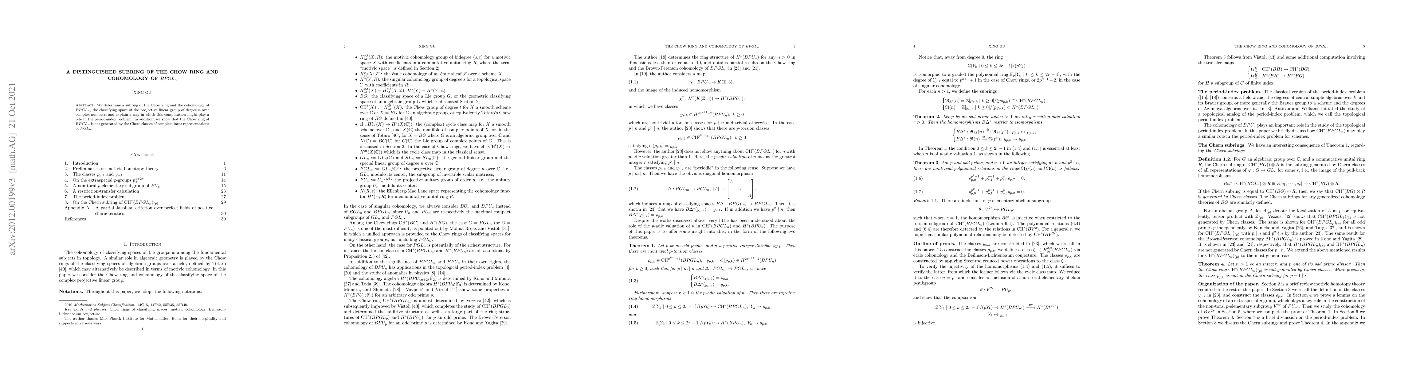Summary: This paper identifies a distinguished subring within the Chow ring and cohomology of $BPGL_n$, revealing its potential relevance to the period-index problem, and demonstrates that the Chow ring of $BPGL_n$ cannot be generated solely by the Chern classes of linear representations of $PGL_n$.