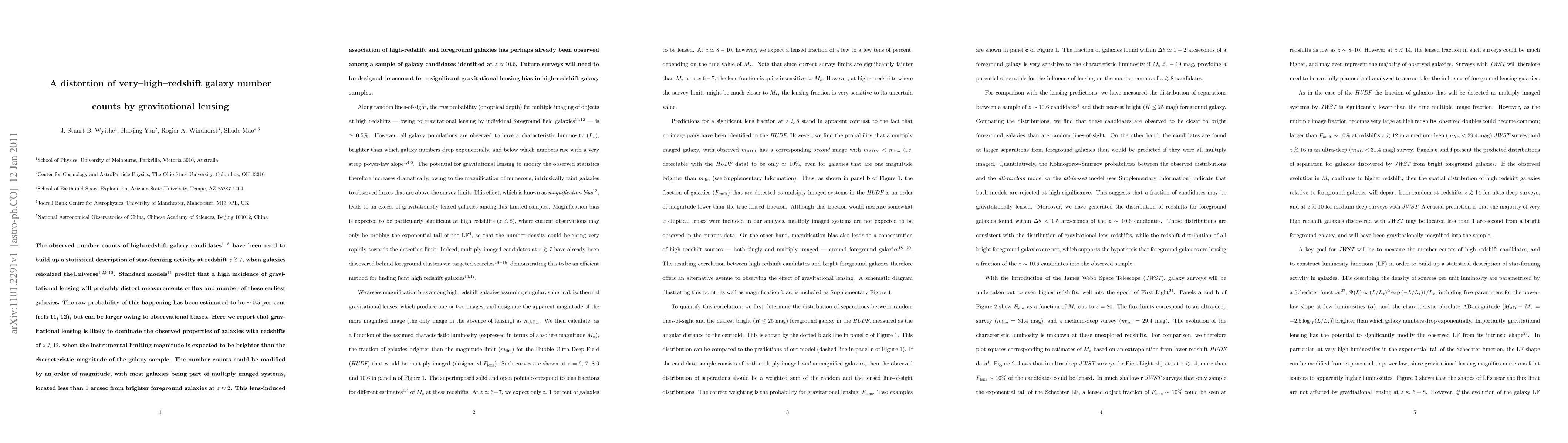 This paper discusses how gravitational lensing significantly distorts the number counts of very high-redshift galaxies, potentially altering observed properties by an order of magnitude. Future surveys must consider this lensing bias to accurately interpret high-redshift galaxy samples.
