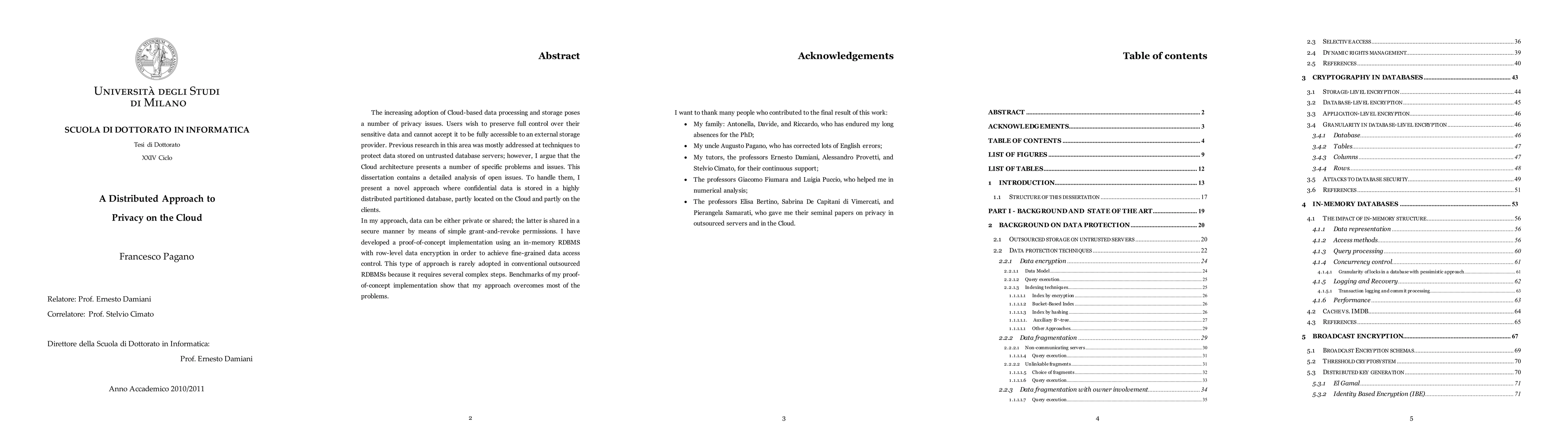 The increasing adoption of Cloud-based data processing and storage poses a number of privacy issues. Users wish to preserve full control over their sensitive data and cannot accept it to be fully accessible to an external storage provider. Previous research in this area was mostly addressed at techniques to protect data stored on untrusted database servers; however, I argue that the Cloud architecture presents a number of specific problems and issues. This dissertation contains a detailed analysis of open issues. To handle them, I present a novel approach where confidential data is stored in a highly distributed partitioned database, partly located on the Cloud and partly on the clients. In my approach, data can be either private or shared; the latter is shared in a secure manner by means of simple grant-and-revoke permissions. I have developed a proof-of-concept implementation using an in-memory RDBMS with row-level data encryption in order to achieve fine-grained data access control. This type of approach is rarely adopted in conventional outsourced RDBMSs because it requires several complex steps. Benchmarks of my proofof-concept implementation show that my approach overcomes most of the problems.