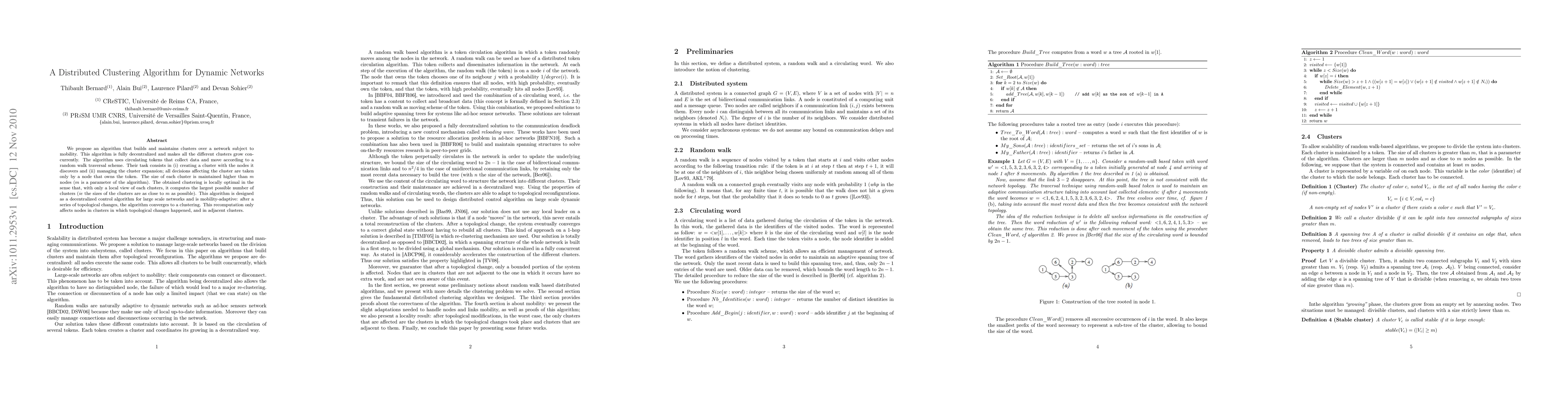 We propose an algorithm that builds and maintains clusters over a network subject to mobility. This algorithm is fully decentralized and makes all the different clusters grow concurrently. The algorithm uses circulating tokens that collect data and move according to a random walk traversal scheme. Their task consists in (i) creating a cluster with the nodes it discovers and (ii) managing the cluster expansion; all decisions affecting the cluster are taken only by a node that owns the token. The size of each cluster is maintained higher than $m$ nodes ($m$ is a parameter of the algorithm). The obtained clustering is locally optimal in the sense that, with only a local view of each clusters, it computes the largest possible number of clusters (\emph{ie} the sizes of the clusters are as close to $m$ as possible). This algorithm is designed as a decentralized control algorithm for large scale networks and is mobility-adaptive: after a series of topological changes, the algorithm converges to a clustering. This recomputation only affects nodes in clusters in which topological changes happened, and in adjacent clusters.