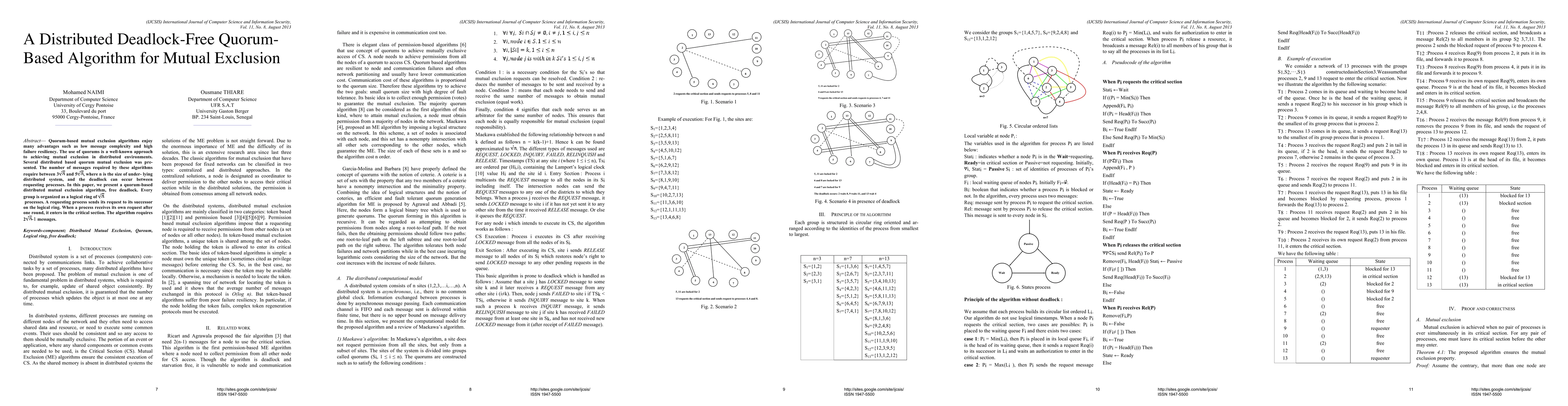 This paper proposes a deadlock-free quorum-based algorithm for mutual exclusion in distributed systems, emphasizing low message complexity and high failure resilience. The algorithm leverages quorums to ensure mutual exclusion while maintaining system robustness against failures.