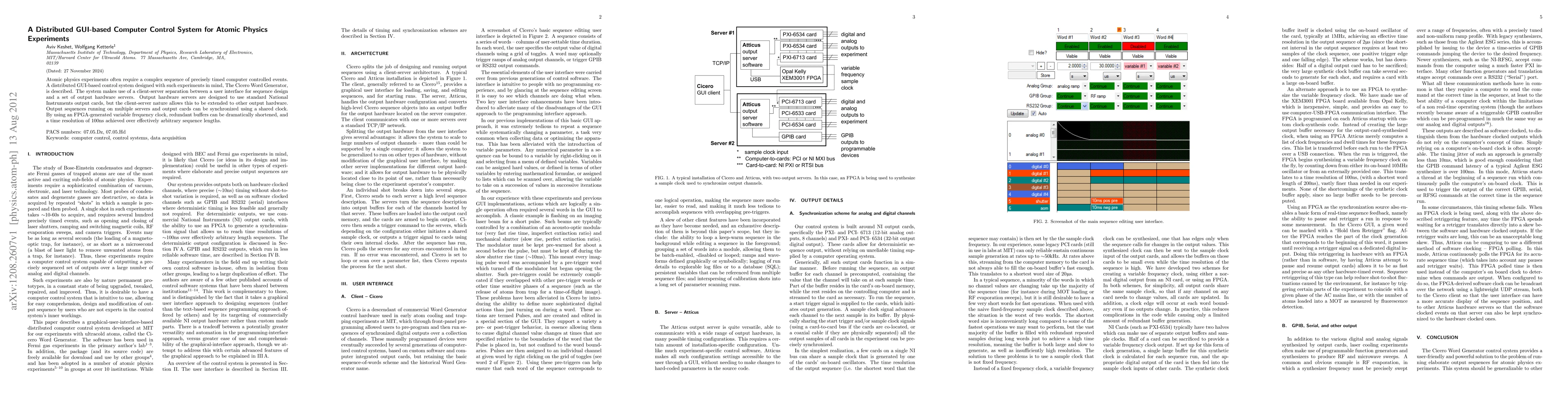 This paper describes the Cicero Word Generator, a distributed GUI-based control system for atomic physics experiments, featuring a client-server architecture that synchronizes output sequences across multiple servers and hardware. It achieves a time resolution of 100ns using an FPGA-generated clock.