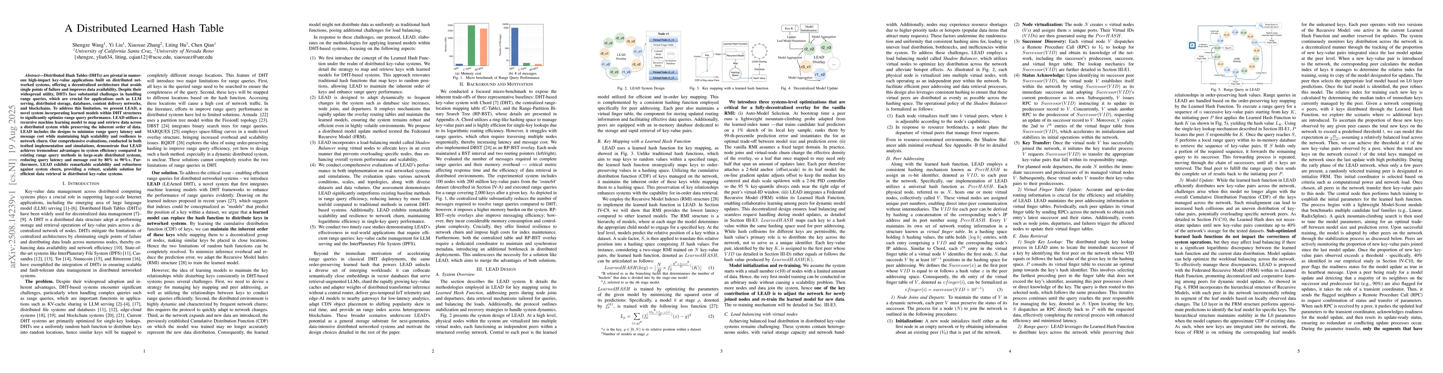 Distributed Hash Tables (DHTs) are pivotal in numerous high-impact key-value applications built on distributed networked systems, offering a decentralized architecture that avoids single points of failure and improves data availability. Despite their widespread utility, DHTs face substantial challenges in handling range queries, which are crucial for applications such as LLM serving, distributed storage, databases, content delivery networks, and blockchains. To address this limitation, we present LEAD, a novel system incorporating learned models within DHT structures to significantly optimize range query performance. LEAD utilizes a recursive machine learning model to map and retrieve data across a distributed system while preserving the inherent order of data. LEAD includes the designs to minimize range query latency and message cost while maintaining high scalability and resilience to network churn. Our comprehensive evaluations, conducted in both testbed implementation and simulations, demonstrate that LEAD achieves tremendous advantages in system efficiency compared to existing range query methods in large-scale distributed systems, reducing query latency and message cost by 80% to 90%+. Furthermore, LEAD exhibits remarkable scalability and robustness against system churn, providing a robust, scalable solution for efficient data retrieval in distributed key-value systems.