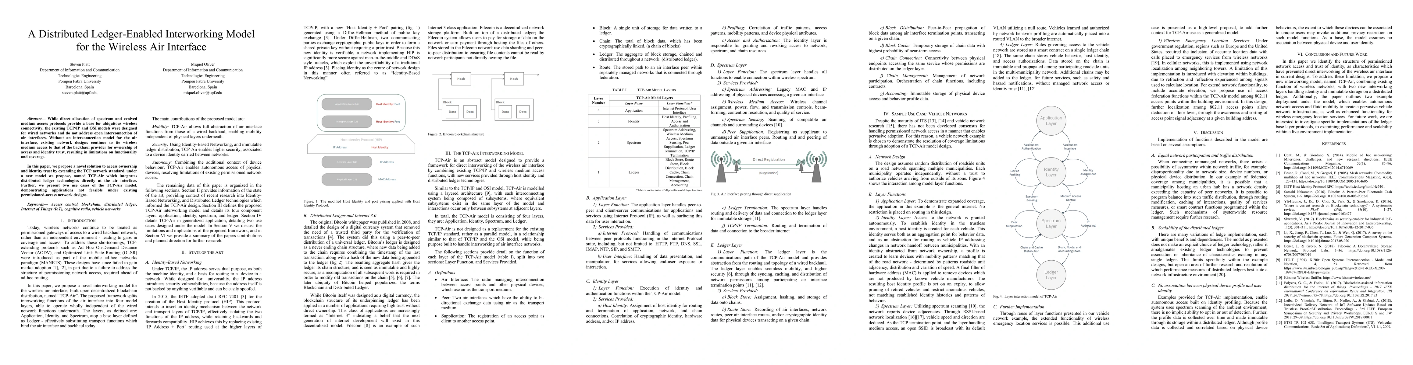 While direct allocation of spectrum and evolved medium access protocols provide a base for ubiquitous wireless connectivity, the existing TCP/IP and OSI models were designed for wired networks and do not address open interconnection of air interfaces. Without an interconnection model for the air interface, existing network designs continue to tie wireless medium access to that of the backhaul provider for ownership of access and identity trust, resulting in limitations on functionality and coverage. In this paper, we propose a novel solution to access ownership and identity trust by extending the TCP network standard, under a new model we propose, named TCP-Air which integrates distributed ledger technologies directly at the air interface. Further, we present two use cases of the TCP-Air model, demonstrating applications not feasible under existing permissioned-access network designs.