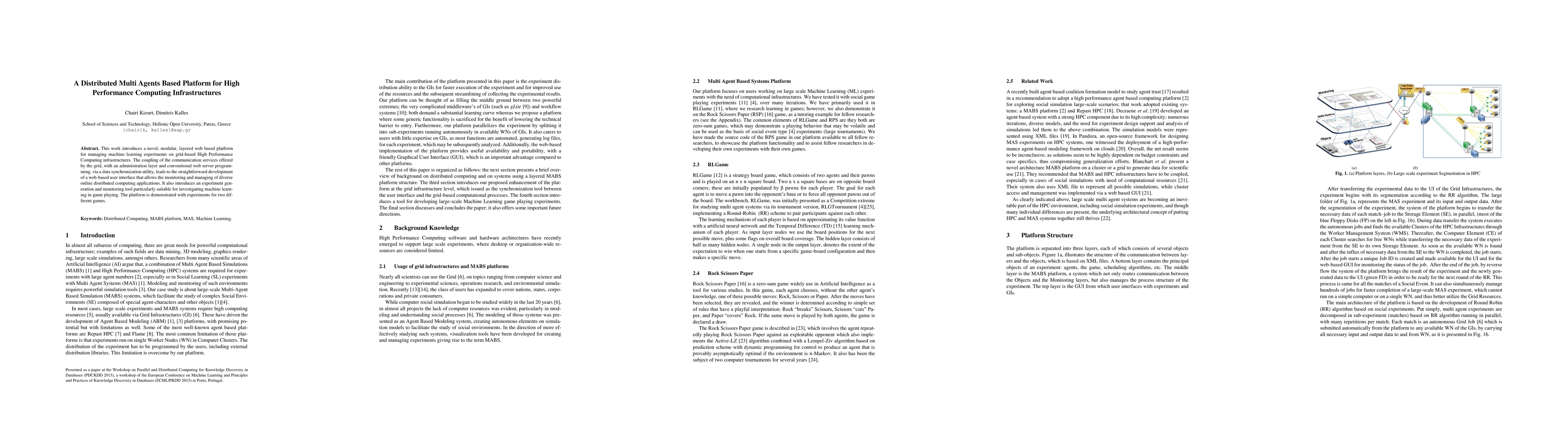 This work introduces a novel, modular, layered web based platform for managing machine learning experiments on grid-based High Performance Computing infrastructures. The coupling of the communication services offered by the grid, with an administration layer and conventional web server programming, via a data synchronization utility, leads to the straightforward development of a web-based user interface that allows the monitoring and managing of diverse online distributed computing applications. It also introduces an experiment generation and monitoring tool particularly suitable for investigating machine learning in game playing. The platform is demonstrated with experiments for two different games.