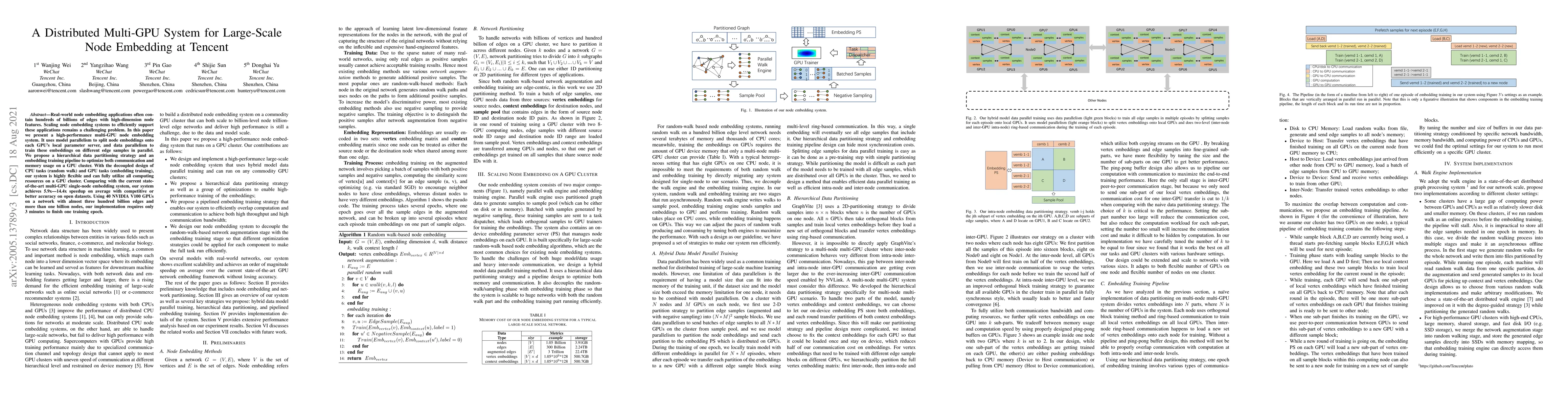 A new multi-GPU system for node embedding outperforms existing systems with 5.9x-14.4x speedup on average while achieving competitive accuracy.