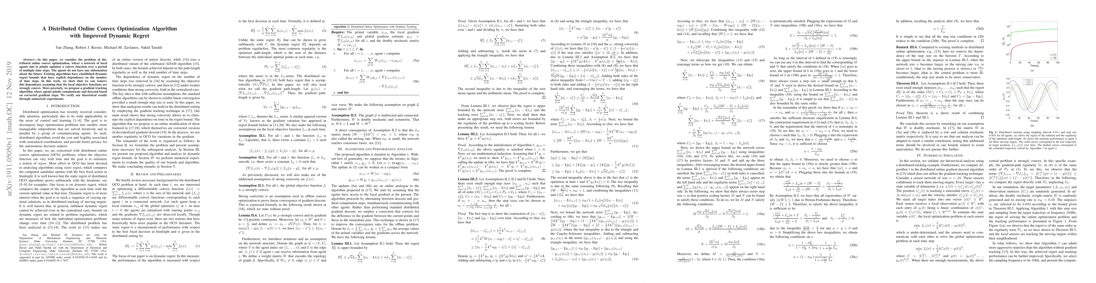 This paper proposes a distributed online convex optimization algorithm that eliminates the explicit dependence on the number of time steps in dynamic regret bounds, assuming strongly convex local objective functions. The algorithm involves gradient tracking and joint communication among agents, validated by numerical experiments.