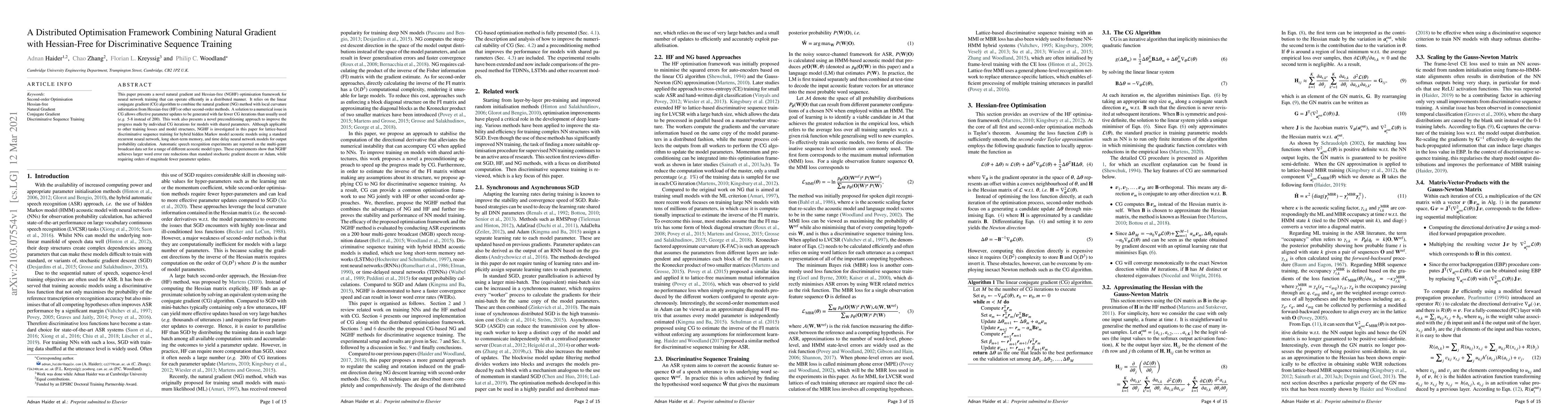 This paper introduces a distributed optimisation framework combining natural gradient with Hessian-free methods for efficient neural network training, showing improved performance in automatic speech recognition tasks compared to standard methods while requiring fewer updates.