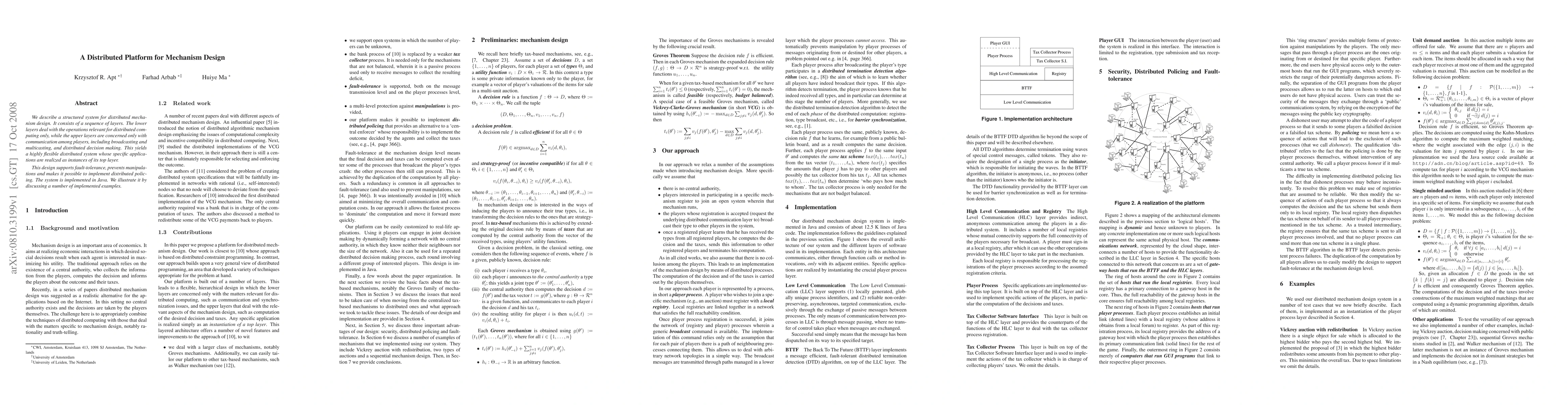 This paper presents a layered distributed mechanism design platform implemented in Java, which supports fault-tolerance, manipulation prevention, and distributed policing through flexible communication and decision-making layers. Various implemented examples demonstrate its practical applications.