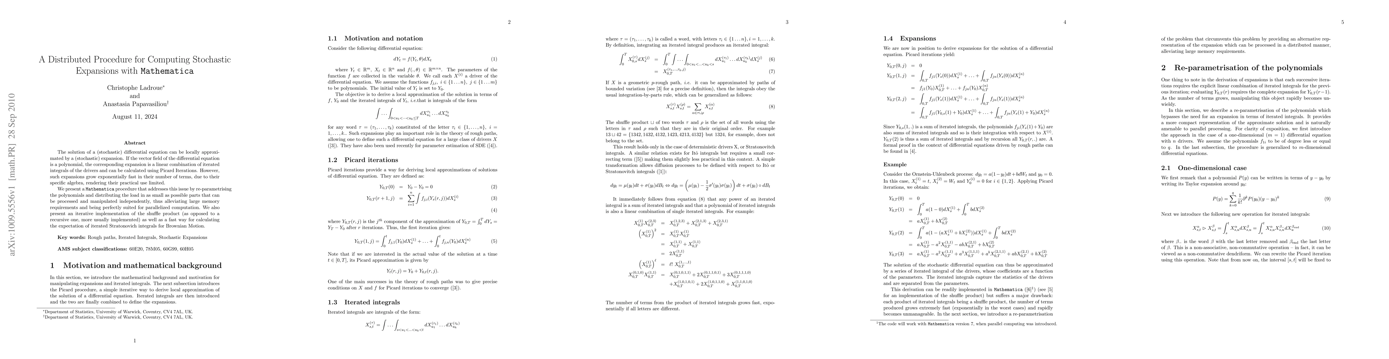 The solution of a (stochastic) differential equation can be locally approximated by a (stochastic) expansion. If the vector field of the differential equation is a polynomial, the corresponding expansion is a linear combination of iterated integrals of the drivers and can be calculated using Picard Iterations. However, such expansions grow exponentially fast in their number of terms, due to their specific algebra, rendering their practical use limited. We present a Mathematica procedure that addresses this issue by re-parametrising the polynomials and distributing the load in as small as possible parts that can be processed and manipulated independently, thus alleviating large memory requirements and being perfectly suited for parallelized computation. We also present an iterative implementation of the shuffle product (as opposed to a recursive one, more usually implemented) as well as a fast way for calculating the expectation of iterated Stratonovich integrals for Brownian Motion.
