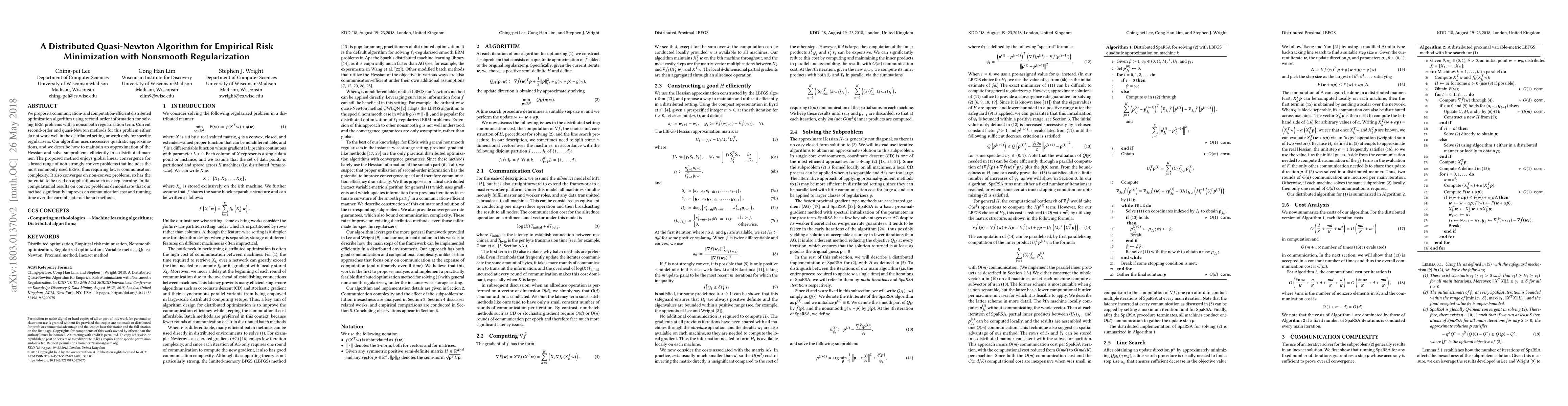 A new distributed optimization algorithm improves on communication cost and running time for solving empirical risk minimization problems with nonsmooth regularization, achieving global linear convergence for a broad range of non-strongly convex problems.