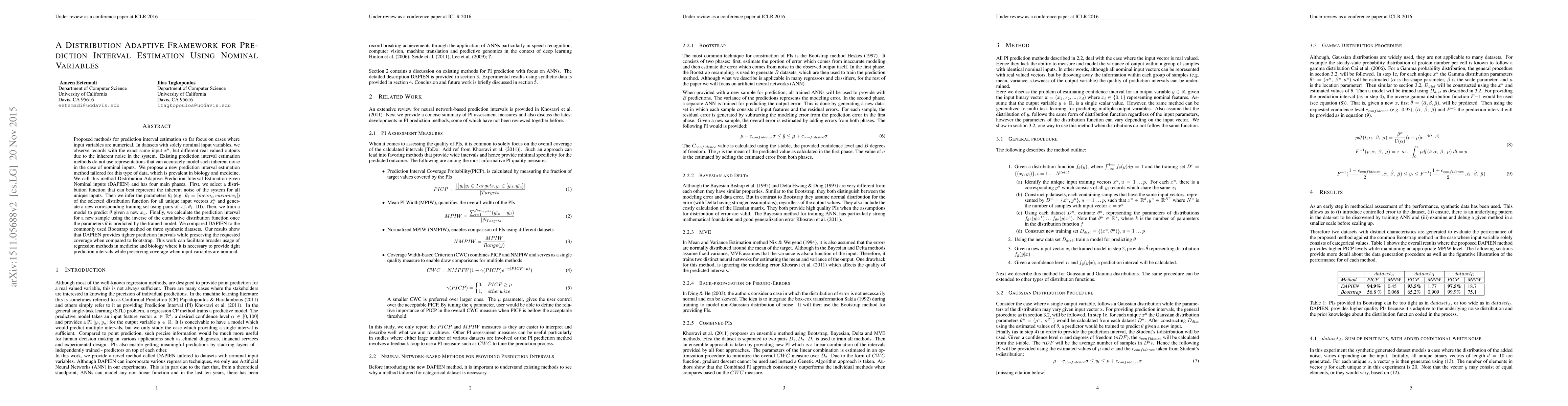 The paper proposes DAPIEN, a novel method for predicting intervals in datasets with nominal input variables, addressing the lack of suitable methods for such data. DAPIEN selects a distribution function to model inherent noise, infers parameters for unique inputs, trains a model to predict these parameters, and calculates prediction intervals. Compared to Bootstrap, DAPIEN provides tighter intervals while preserving coverage, potentially enhancing regression applications in biology and medicine.